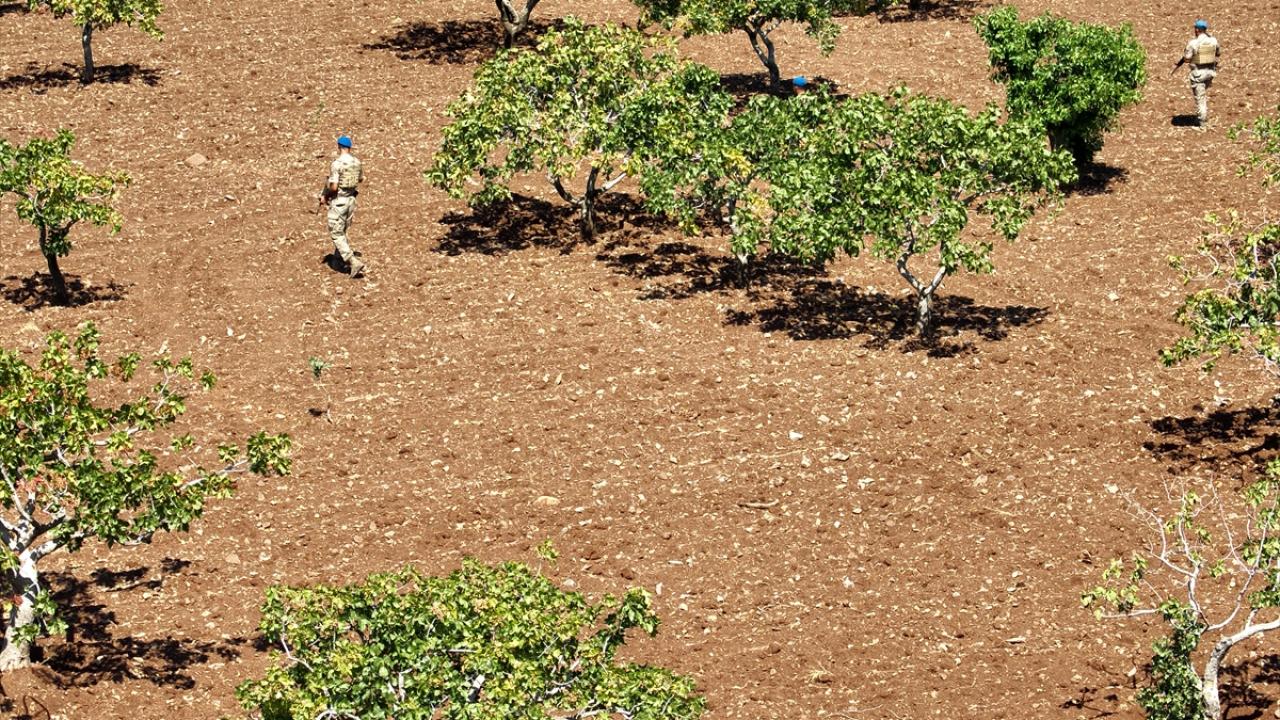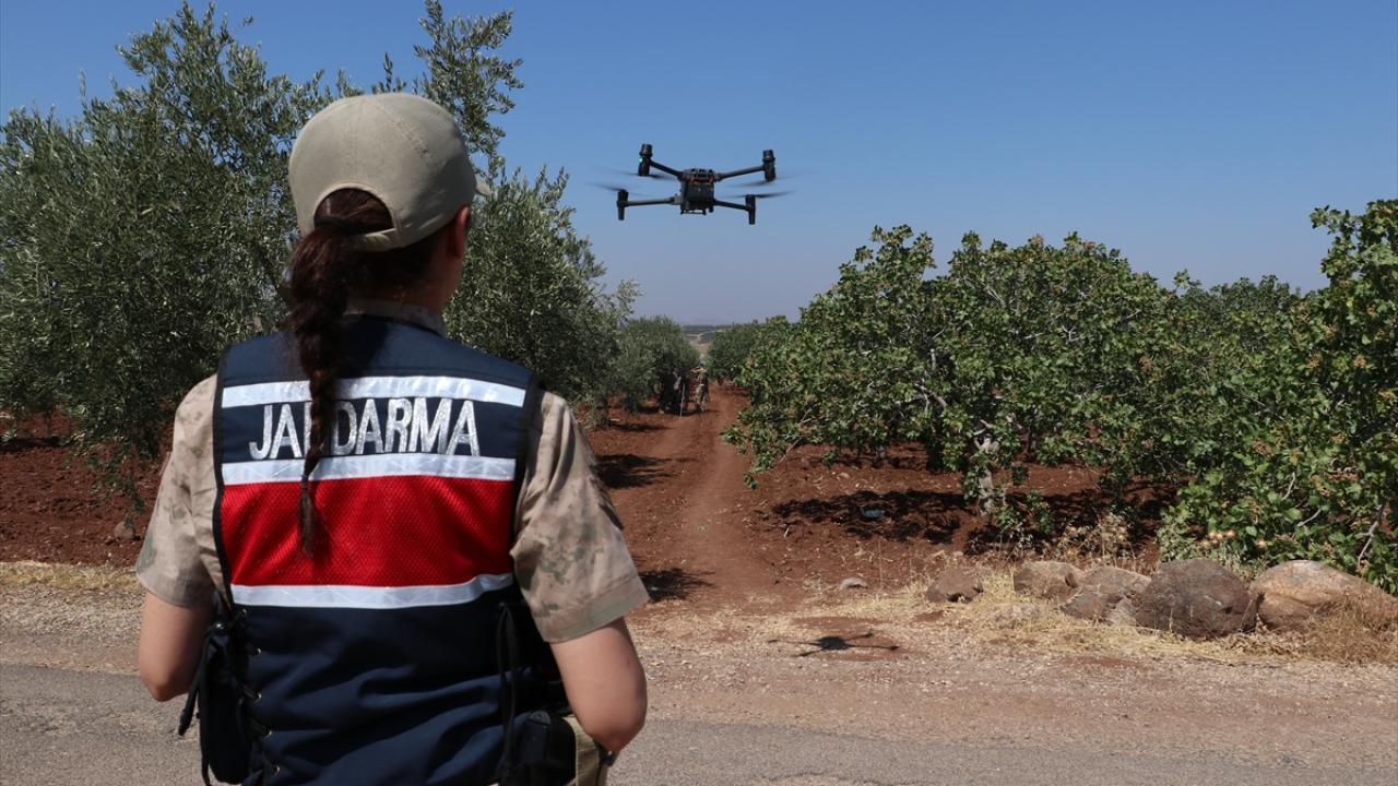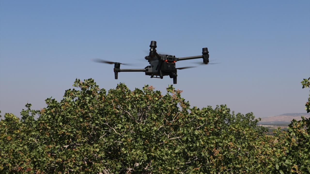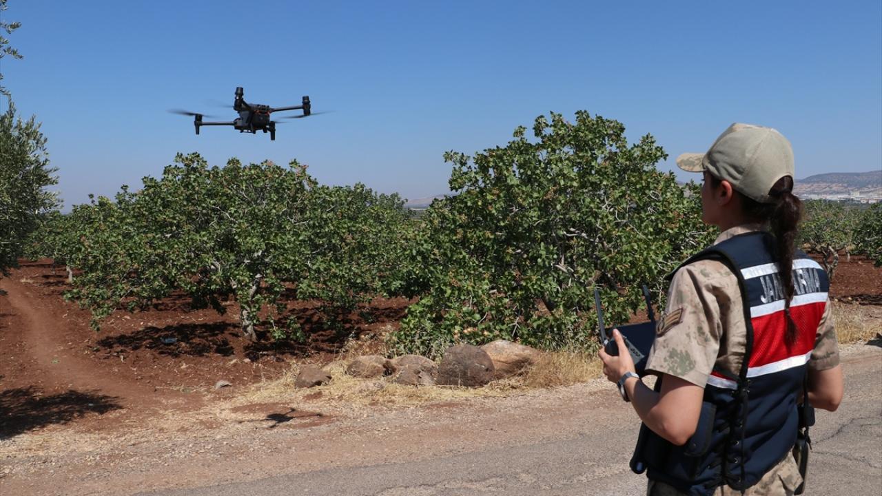 1 milyon 250 bin dikili fıstık ağacının bulunduğu Kilis`te, Yavuzlu ve Akıncı köyü bölgelerini gezen ekipler, önleyici kolluk devriyeleri sırasında dron ile havadan takip ve denetim yapıyor.