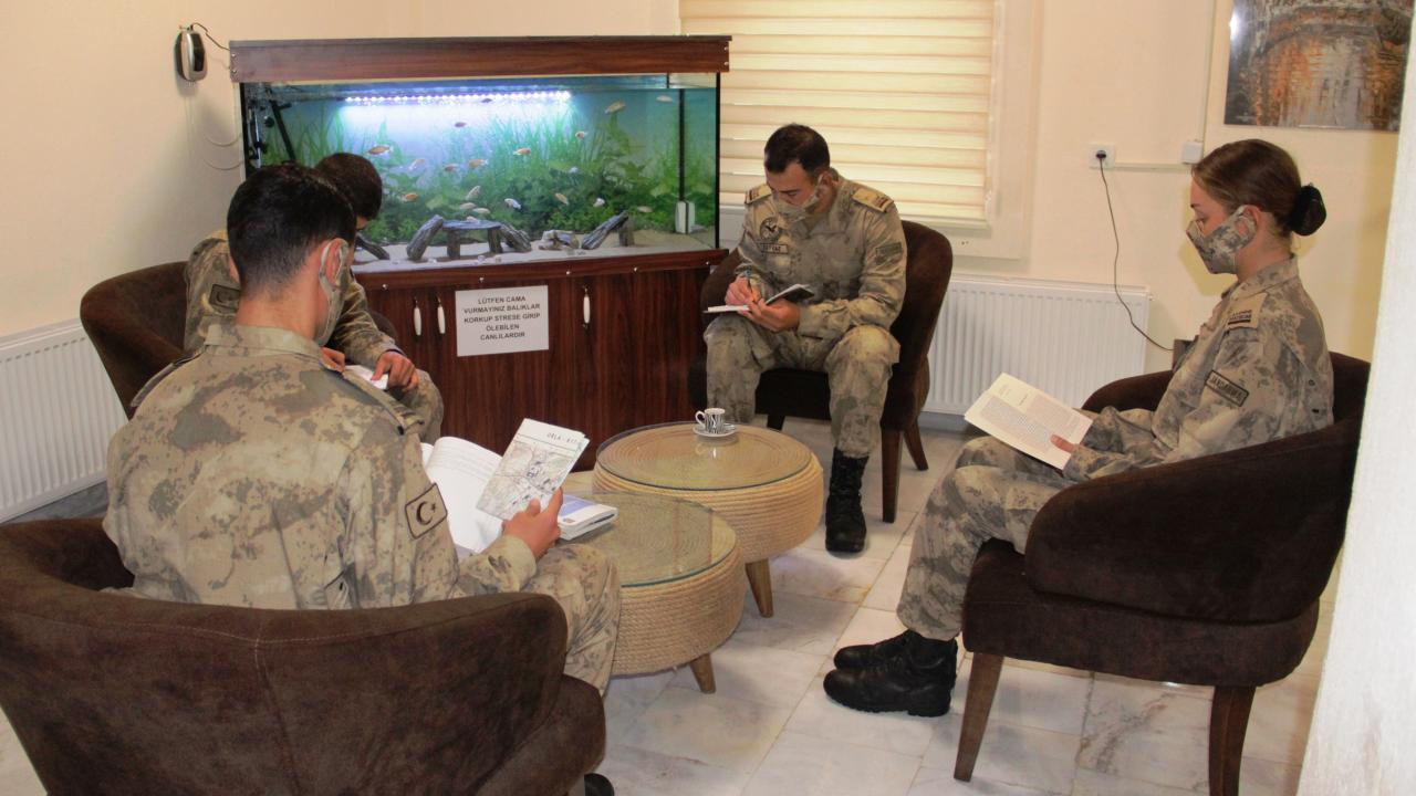 Kursiyerler, eğitimlerin yanı sıra kültürel faaliyetlerini de okul bünyesinde bulunan kütüphanede sürdürüyor.