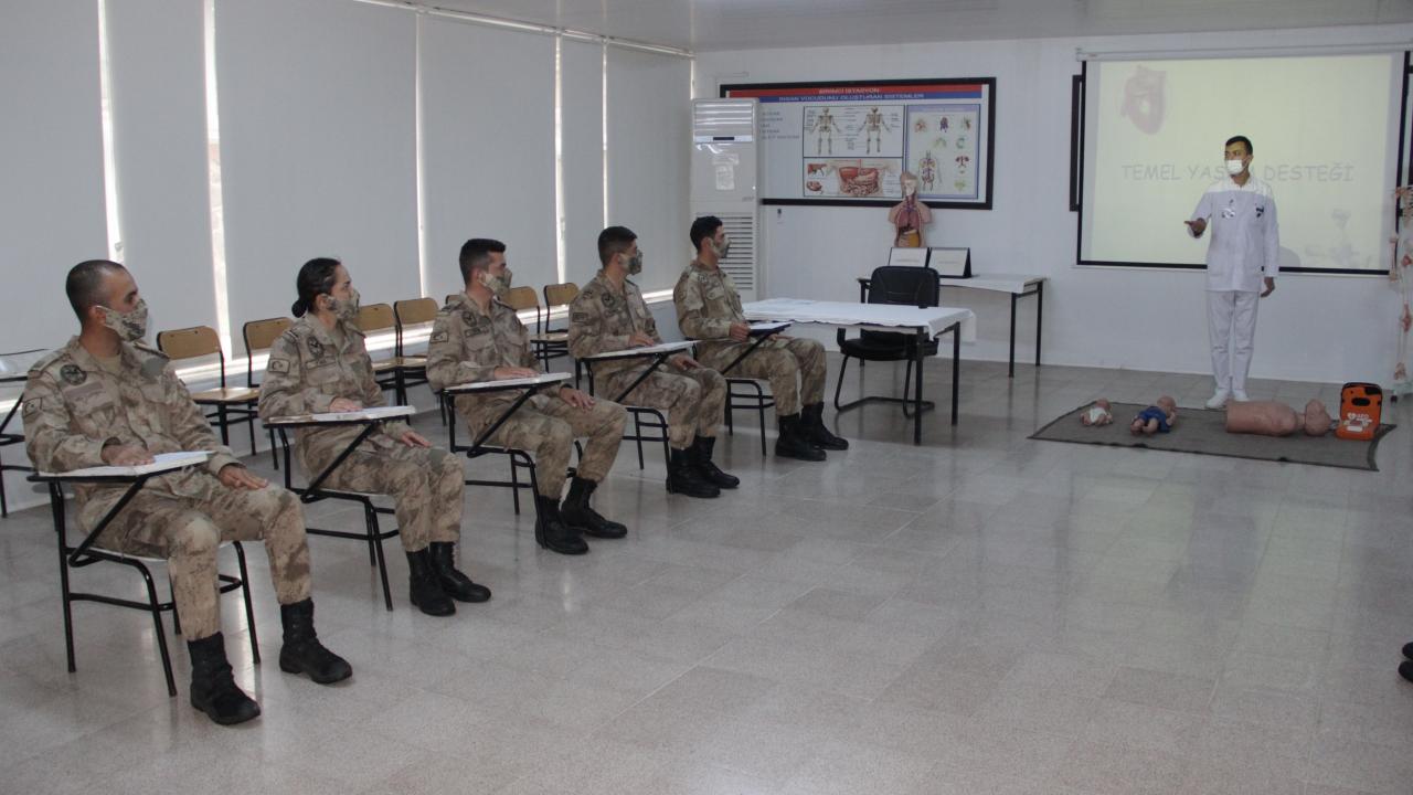 Görev başında karşılaşabilecekleri kaza ve olaylara müdahale edebilmeleri amacıyla ilk yardım eğitimi alan kursiyerlere, damar yolu açma ve kas içi enjeksiyon uygulaması eğitimi de veriliyor.