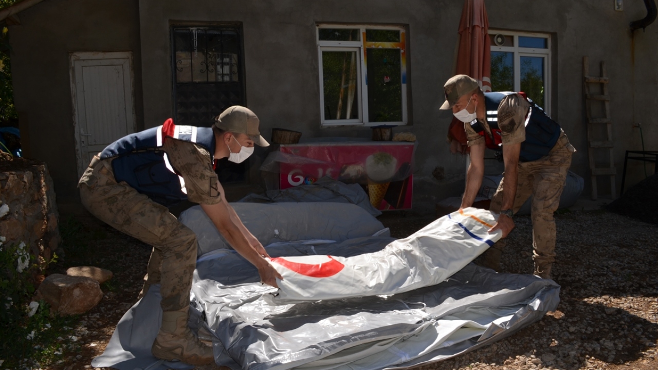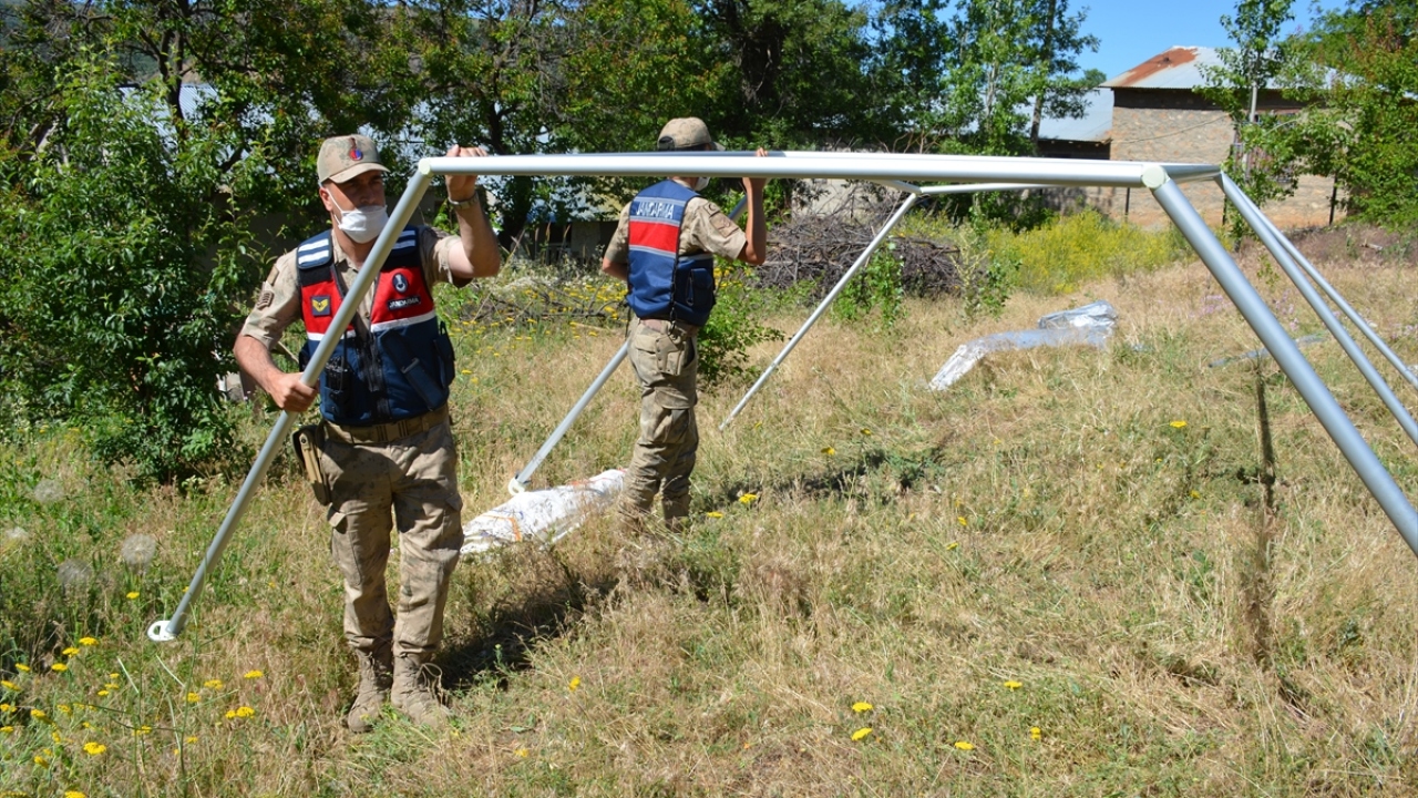 Jandarma, Pütürge'de depremde evleri ağır hasar görenler için çadır kuruyor