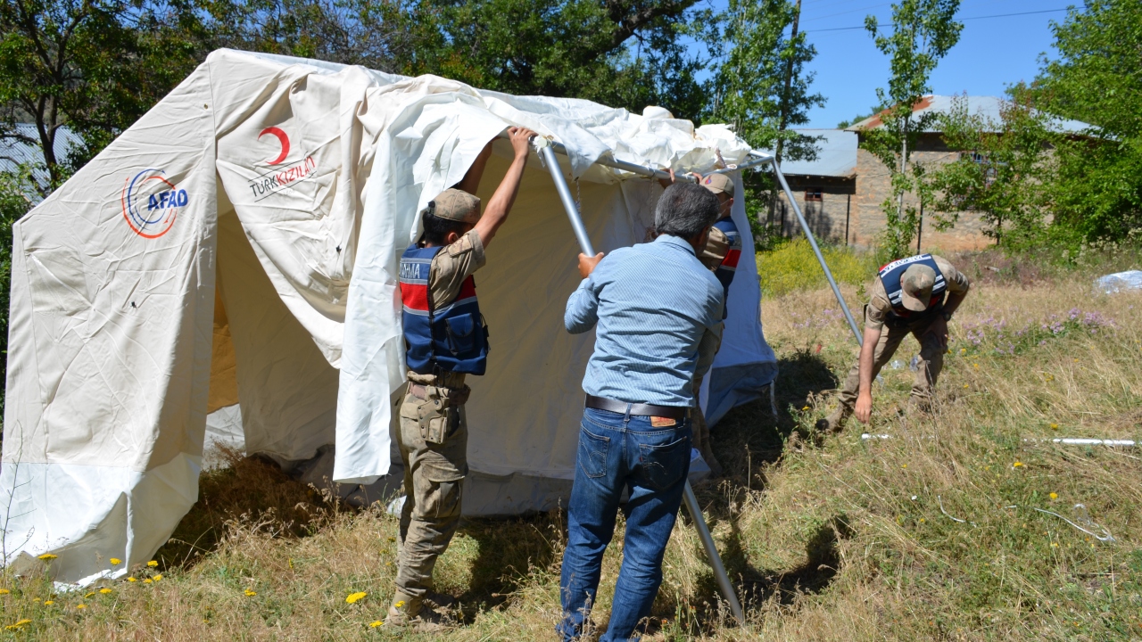 Malatya'da, merkez üssü Pütürge ilçesi olan 5 büyüklüğündeki depremde evleri ağır hasar gören vatandaşlar için jandarma ekipleri çadır kurdu.