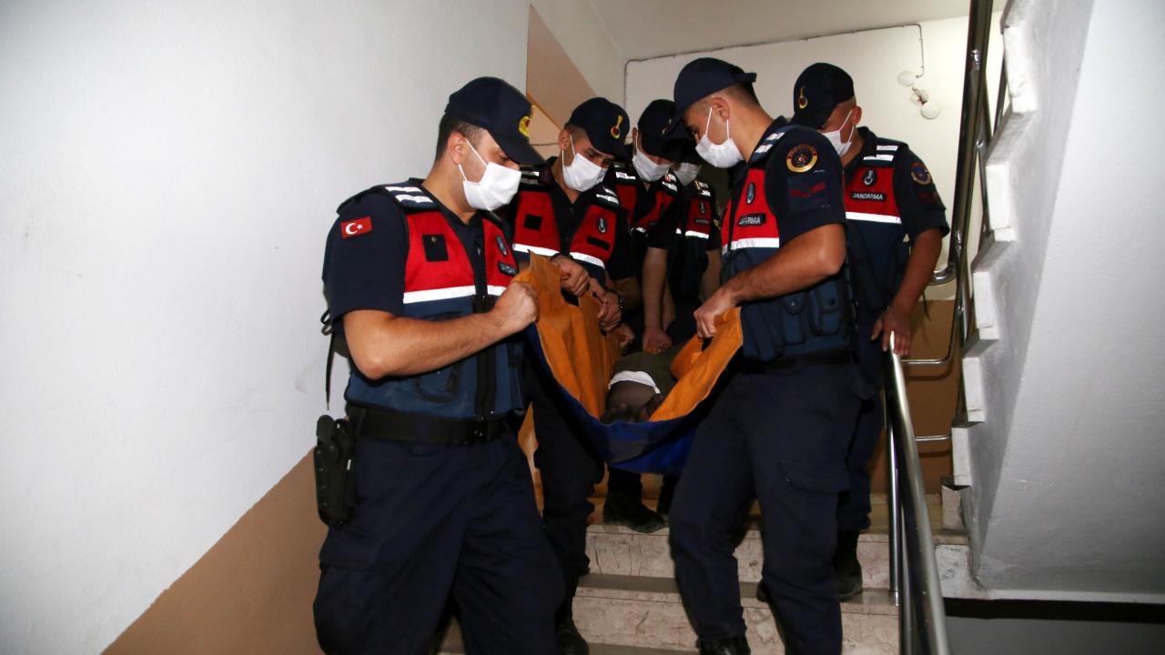 95 kilo ağırlığındaki fiziksel engelli Şermin Basat, 5`inci kattaki evine jandarma tarafından götürüldü.