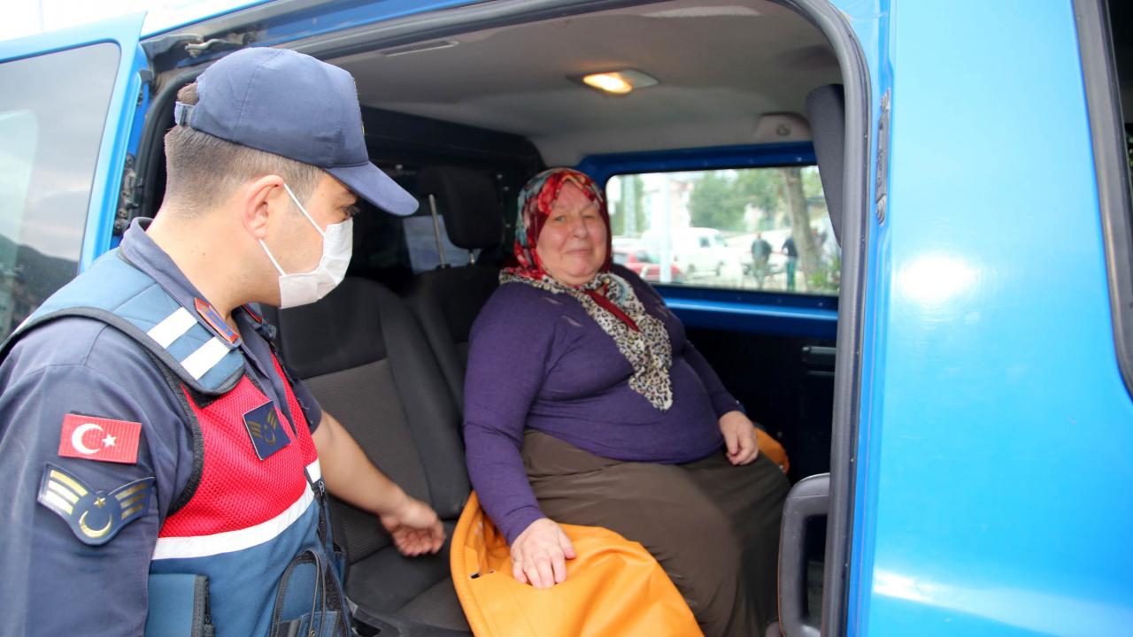 Kastamonu'nun Bozkurt ilçesinde tedavi için İstanbul'a gitmesi gereken engelli kadın, yaşadığı apartmandan jandarma tarafından alınarak otobüse bindirildi.