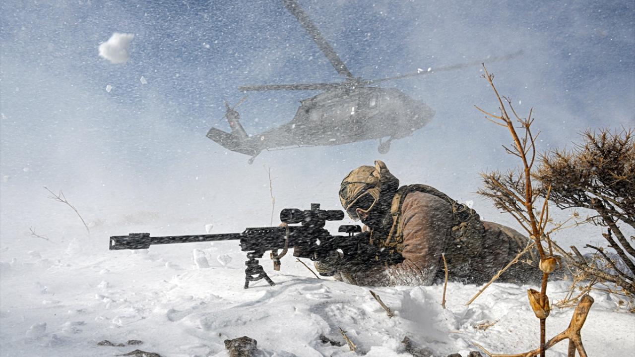 Ağrı İl Jandarma Komutanlığında görevli komandolar, Türkiye`nin en yüksek noktası Ağrı Dağı`nda kış öncesi "ara bul yok et" parolasıyla operasyonlar düzenliyor. Zorlu operasyonlara "daima hazır" olmak için eğitimlerini aksatmayan ve Ağrı Dağı bölgesinin hakim noktalarında teyakkuzda olan komandolar, helikopter destekli tatbikat yaptı. (Arşiv-28.10.2022)