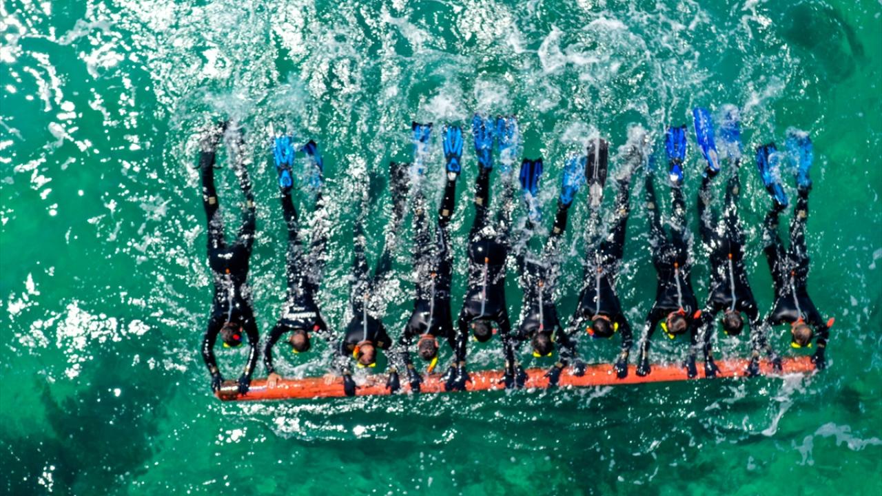 Foça Jandarma Komando Okulu ve Eğitim Merkezi Komutanlığı tarafından 3 ilde düzenlenen kursa katılan komandolar, nefes kesen eğitimlerle zorlu görevlere hazırlanıyor. Kara, deniz, hava safhasıyla İzmir, Ankara ve Kayseri`de düzenlenen "Jandarma Komando İhtisas Kursu"na katılan subay ve astsubaylardan oluşan komandolar, operasyonlar öncesinde zorlu bir eğitim sürecinden geçiyor. Anadolu Ajansı (AA) ekibi, "ihtisaslı komandoların" Ege Denizi`nin derin sularındaki zorlu tatbikatını görüntüledi. (Arşiv-23.06.2021)