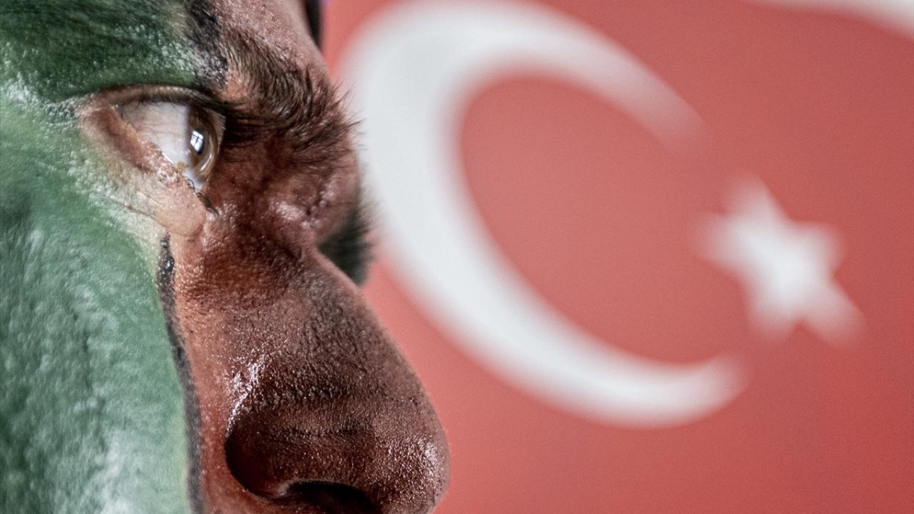 Hatay`ın İskenderun ilçesinde, Kahramanmaraş merkezli depremlerde evleri hasar gördüğü için geçici barınma alanlarında kalan ailelerin çocukları çadırların dışına resimler çizip birbirleriyle oynayarak zamanlarını geçiriyor. Çadırların aralarında koşup oynayan çocuklara, bölgedeki jandarmalar da zaman zaman eşlik ediyor. (Arşiv-20.02.2023 )