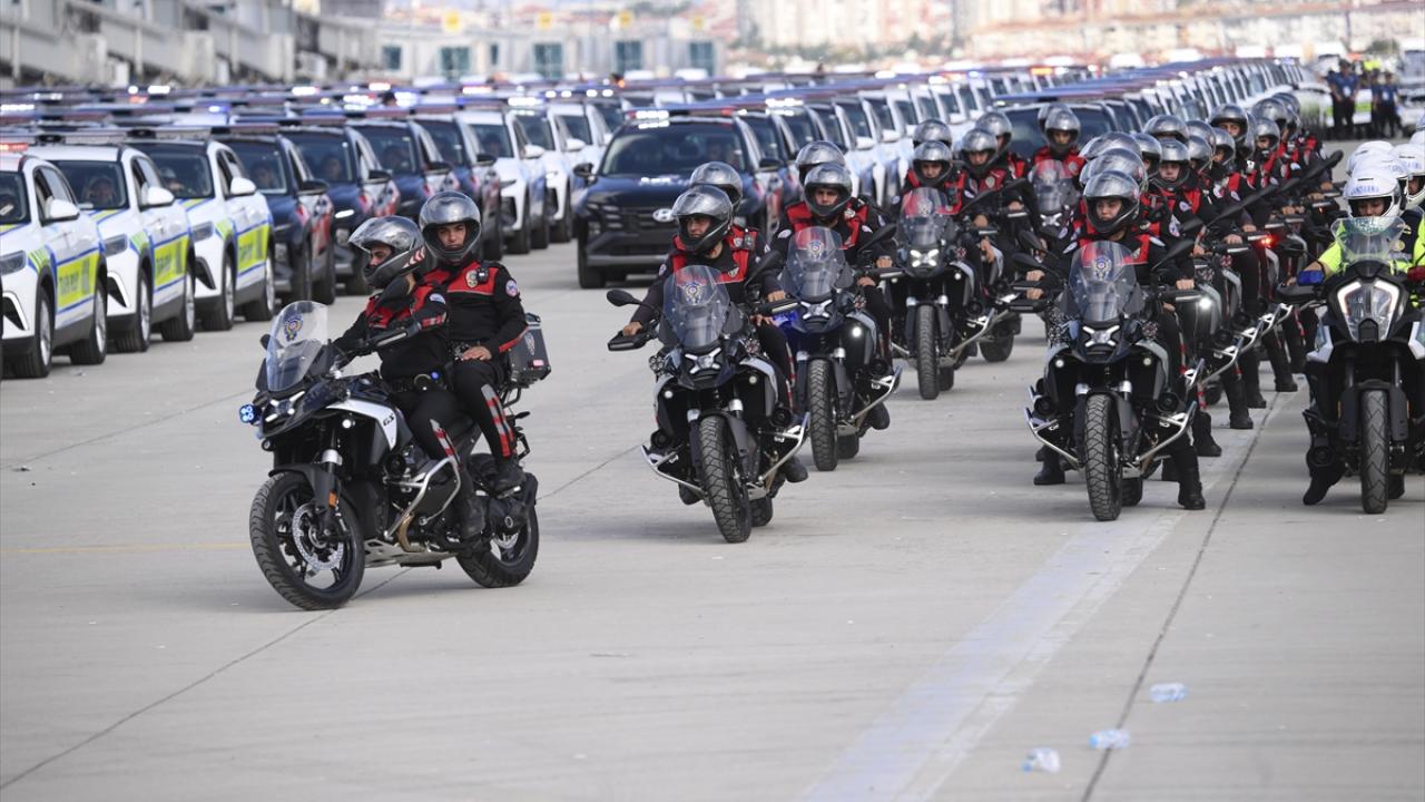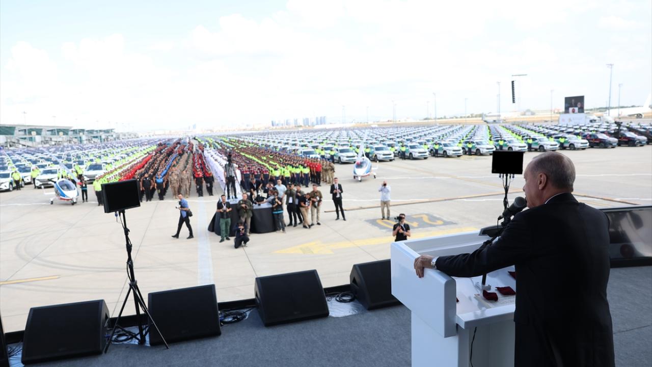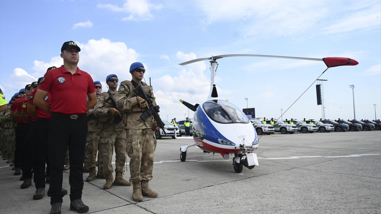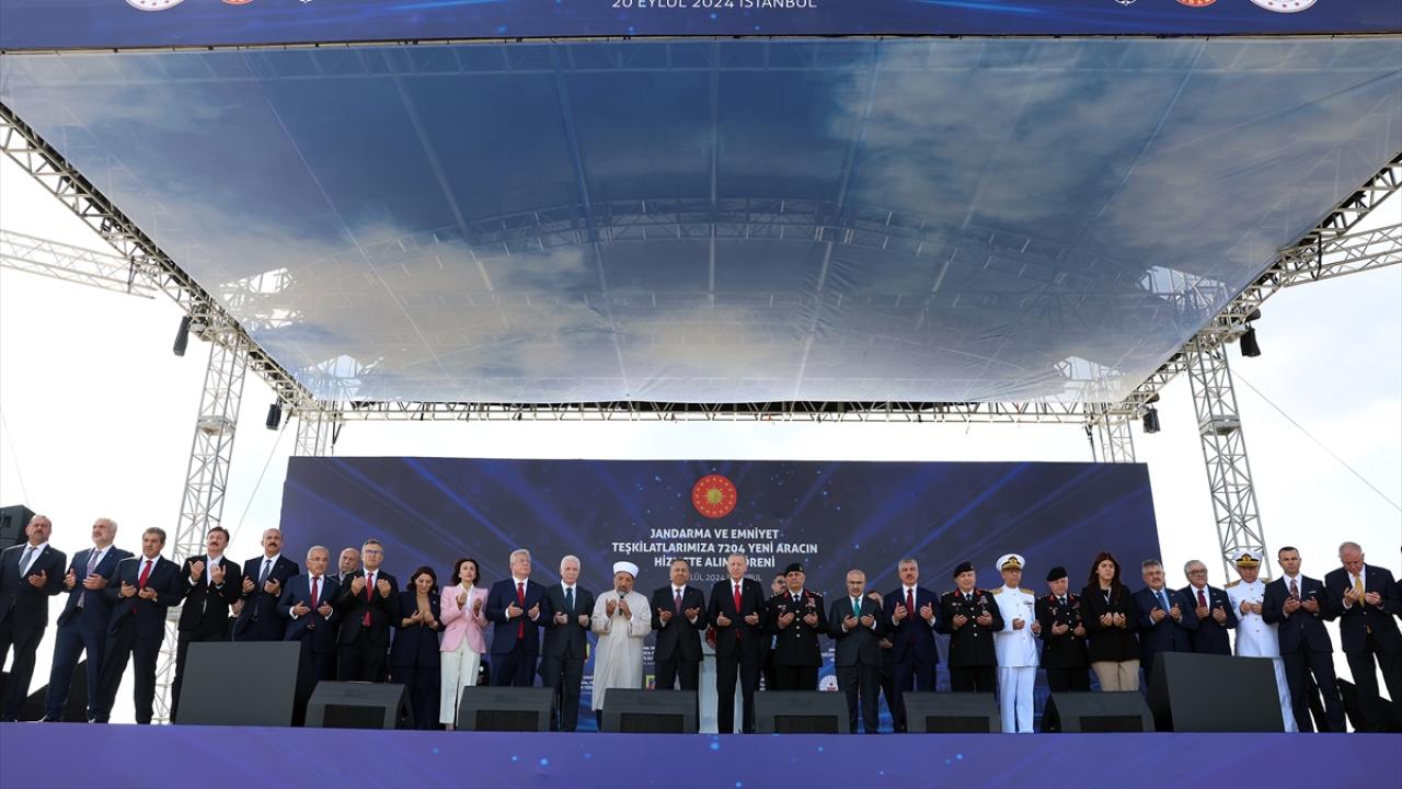 İstanbul'daki Atatürk Havalimanı'nda Jandarma ve Emniyet teşkilatlarına yeni araçların hizmete alımı dolayısıyla tören düzenlendi.