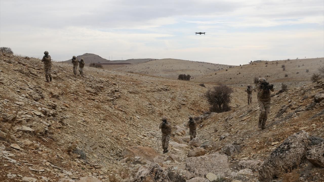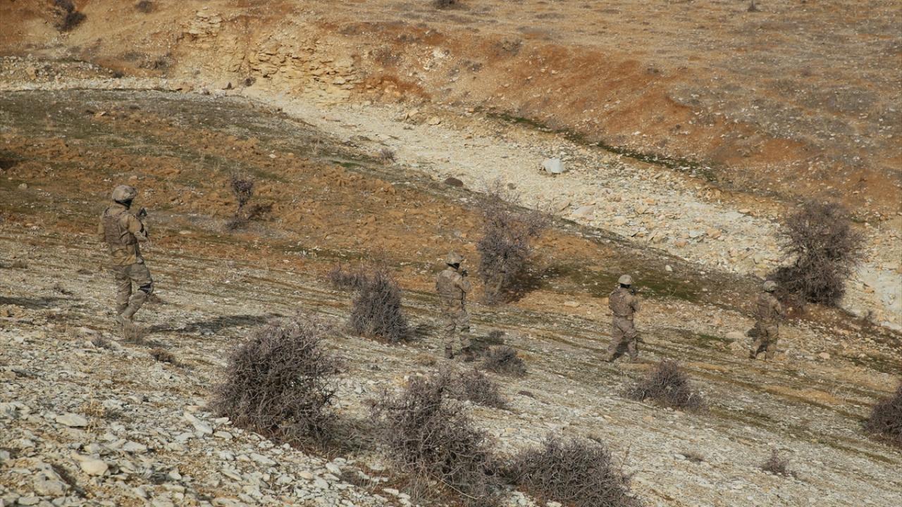 Belirlenen hedeflere yapılan atışların ardından araziye çıkan ekipler, arama ve tarama faaliyetini gerçekleştiriyor.