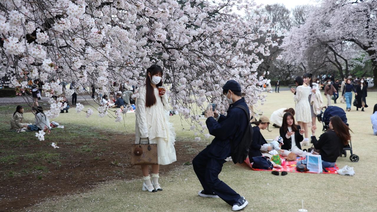 Japonya'da ilkbaharın başlangıcının simgesi kabul edilen `sakura` ağaçlarının çiçeklenmesiyle sokak ve parklar renklendi.