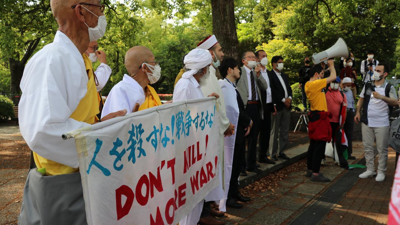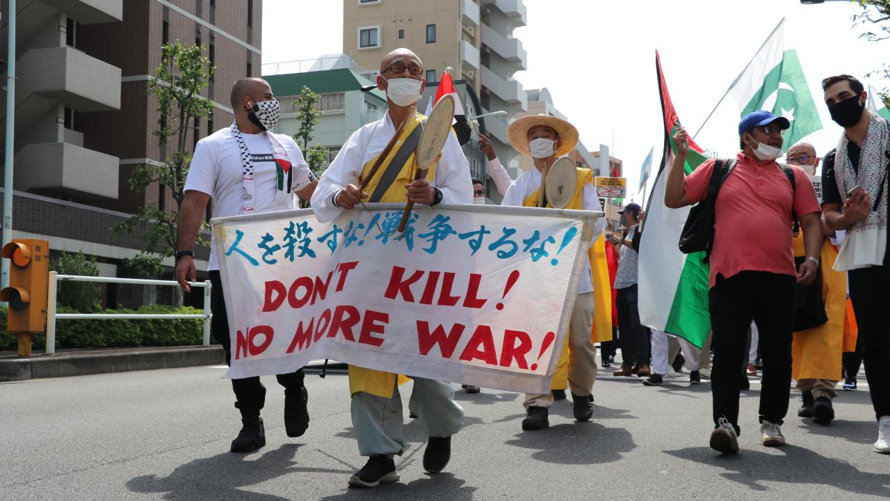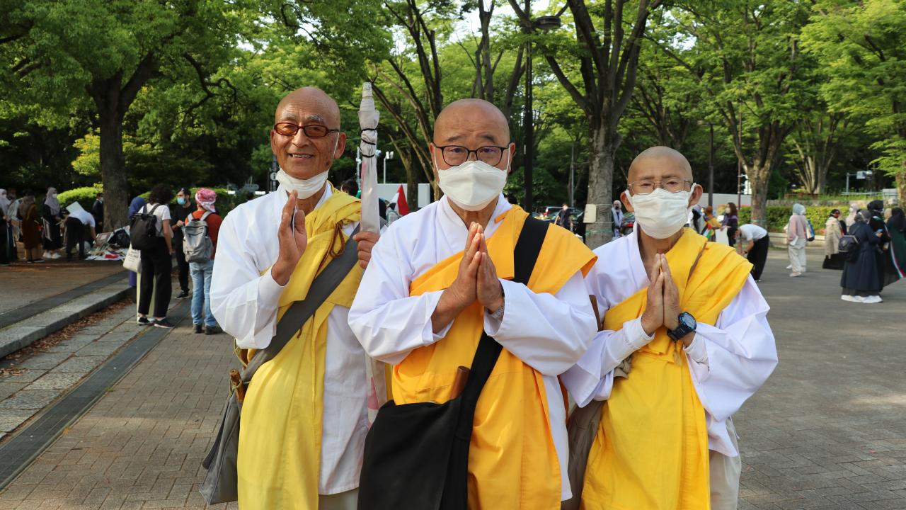 Yürüyüşe Nipponzan Myohoji Budist Tapınağı rahipleri ve Hristiyan Barış Ağı temsilcileri de eşlik etti.