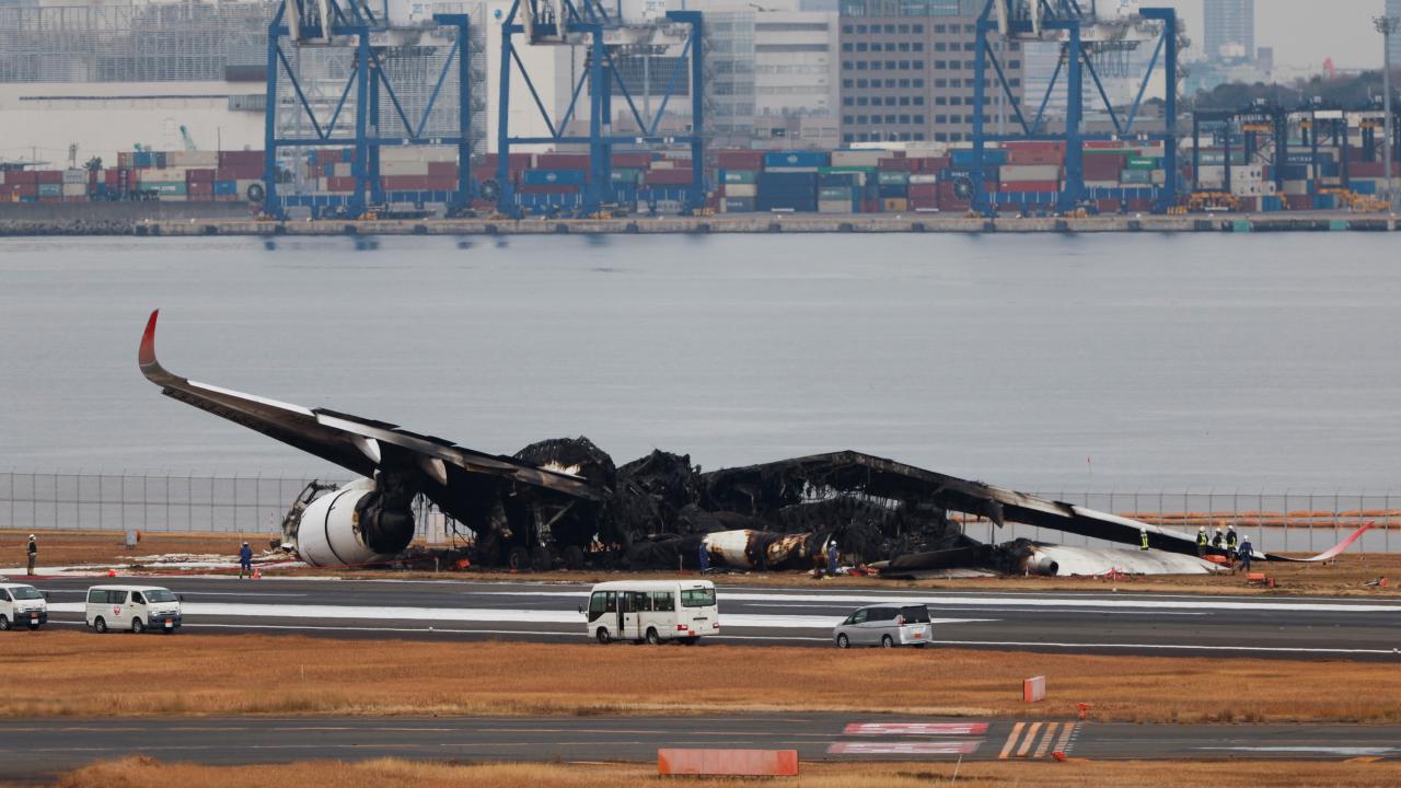 Japonya'nın başkenti Tokyo'daki Haneda Havalimanı pistinde yolcu uçağı ile çarpışan sahil güvenlik uçağındaki 6 kişiden 5'i hayatını kaybetti. Pistte yanan yolcu uçağında bulunan 379 yolcu ve mürettebatın tahliye edildi. O uçaktan geriye küle dönmüş enkaz kaldı.