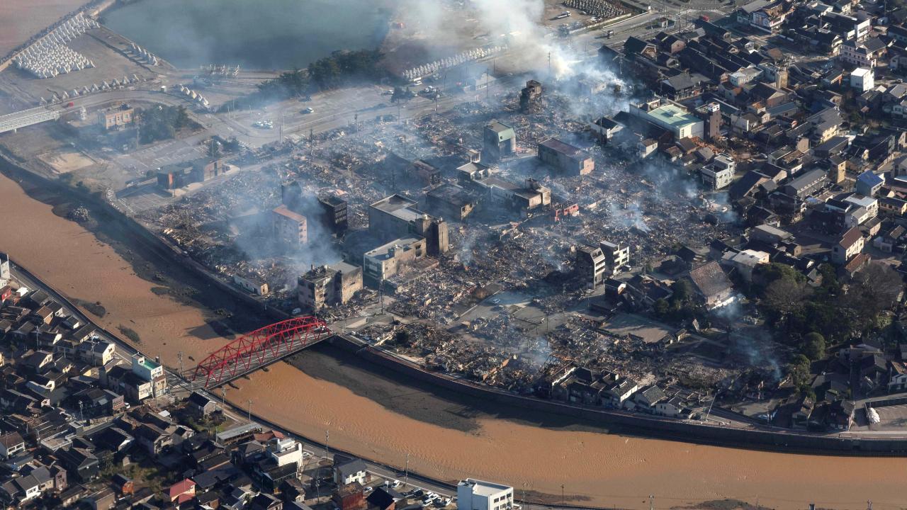 Depremler sonrası kara yollarında çökme yaşandığı, Noto Yarımadası`ndaki Wajima kentinde çıkan yangında yakın çevredeki 200`e yakın yapının hasar gördüğü bildirildi.