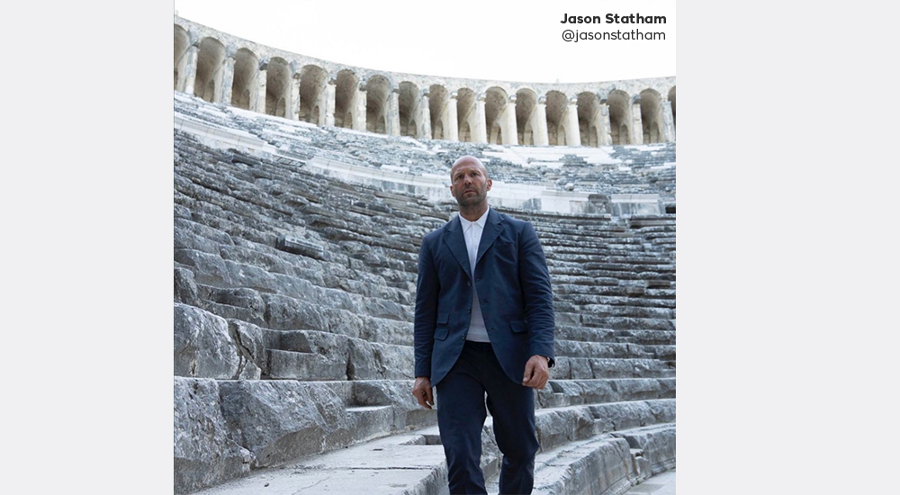 Five Eyes filminin çekimleri için yaklaşık 2 ay Antalya'da kalan ünlü yıldız Jason Statham, sosyal medya hesabından Aspendos Antik Tiyatrosu'nda çektirdiği fotoğraflarını paylaştı. Statham'ın fotoğrafları 1 milyondan fazla beğeni aldı.