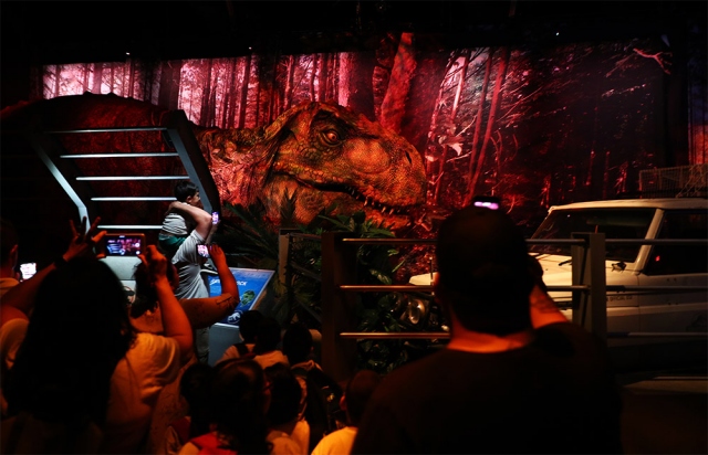 Hollywood'un gişe rekortmenlerinden Jurassic World filminin konu alındığı interaktif sergi, açıldığı Chicago'daki Field Müzesi'nde adeta ziyaretçi akınına uğruyor. Müze bünyesinde yaklaşık bin 500 metrekarelik kapalı alana kurulan "hayali dinozor adası", ziyaretçilere unutulmaz bir deneyim yaşatıyor. Temsili bot yolculuğu ile adaya ulaşan ziyaretçiler, Jurassic World yazılı kapıdan geçtikleri andan itibaren adeta farklı bir dünyaya adım atıyor.