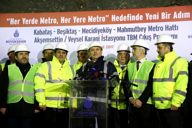 İstanbul Büyükşehir Belediye Başkanı Kadir Topbaş, Mecidiyeköy - Mahmutbey metrosu Tünel Açma Makineleri (TBM) çıkışı tünel birleşmesi nedeniyle Eyüp Veysel Karani İstasyonu'nda gerçekleşen törene katıldı.