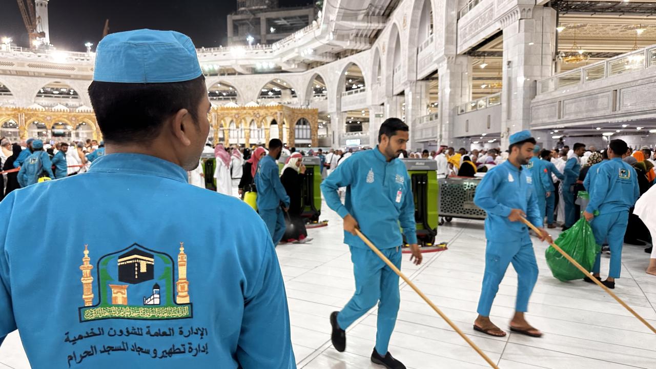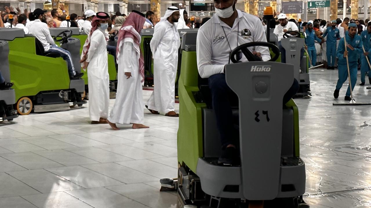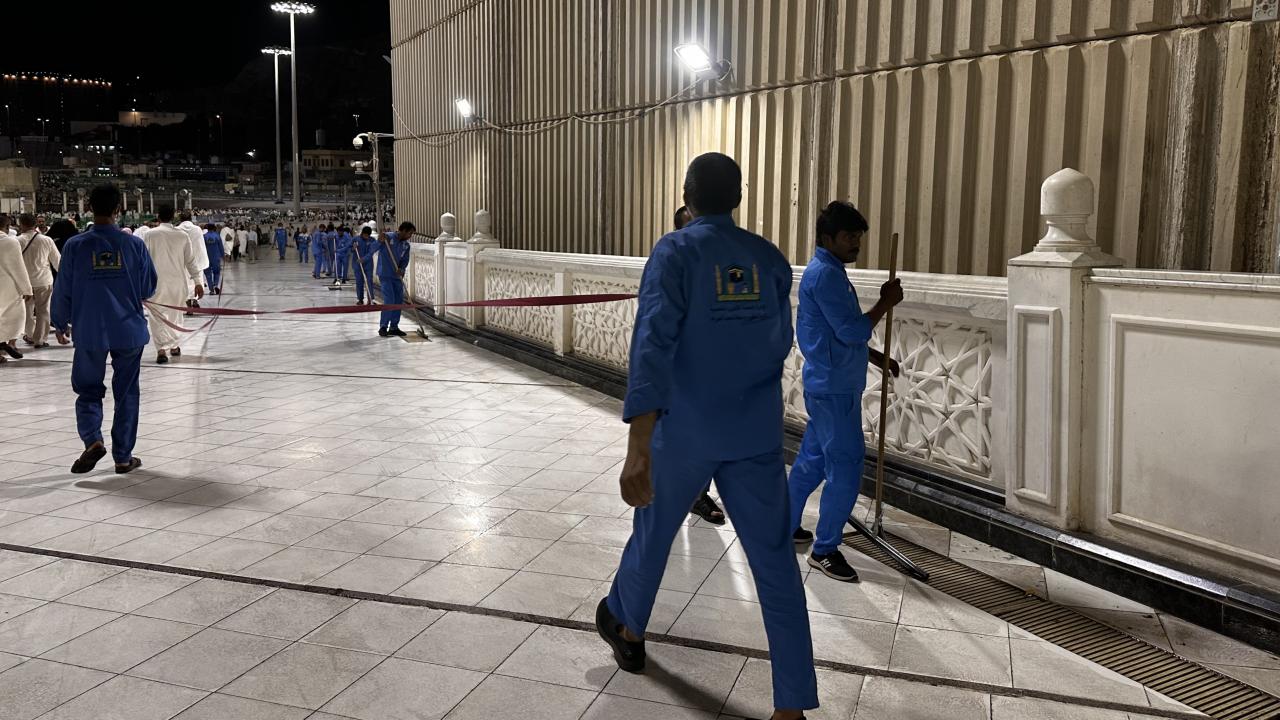Suudi Arabistan’ın Mekke kentindeki Mescid-i Haram'da bulunan temizlik görevlileri hacı adaylarının bu kutsal vazifeyi daha sağlıklı bir ortamda yapabilmeleri için 24 saat esasına göre vardiyalar halinde temizlik yapıyor.