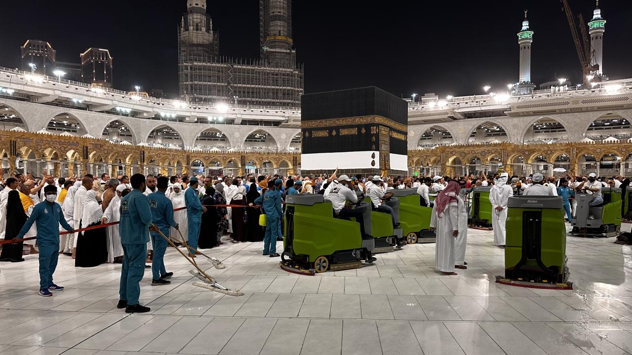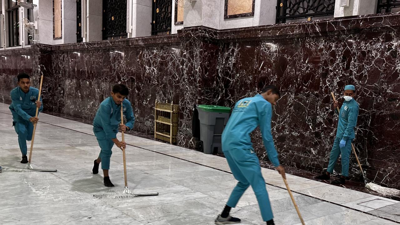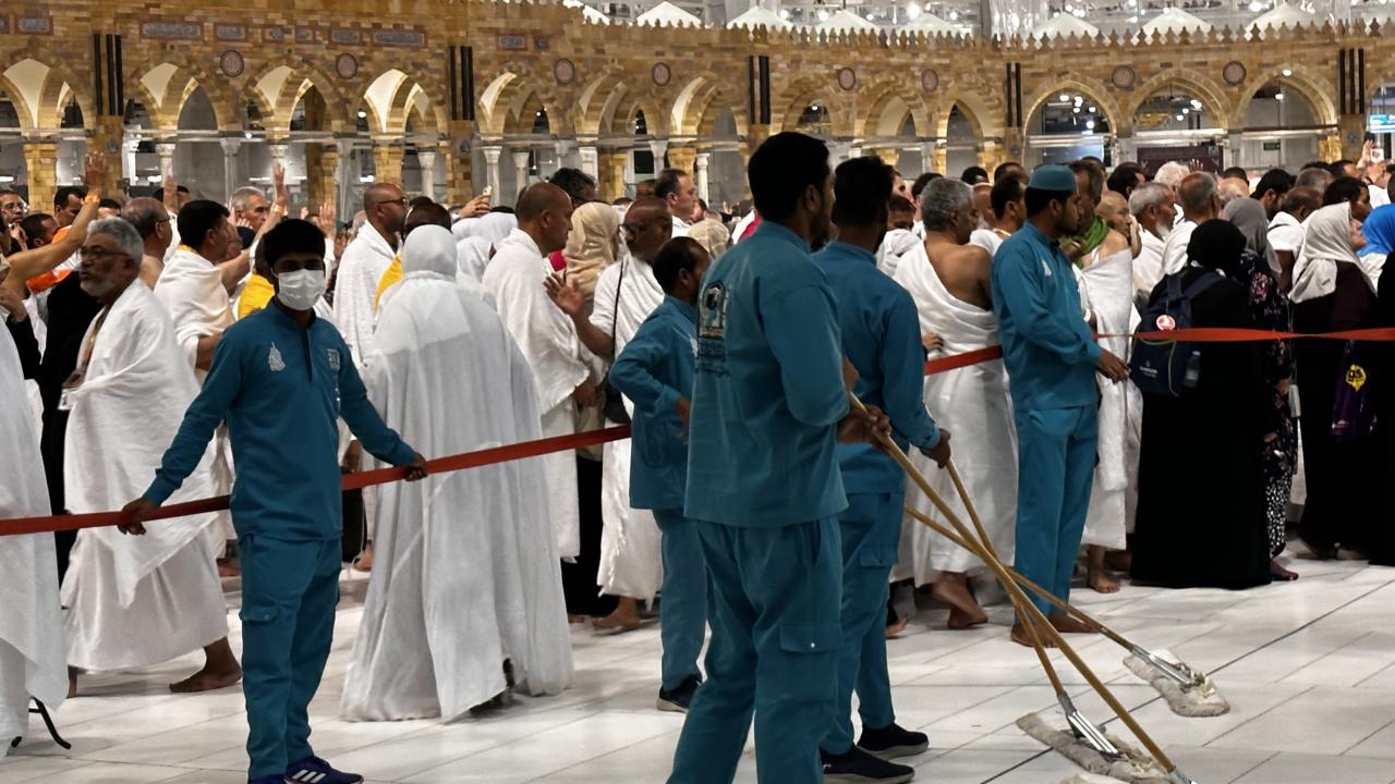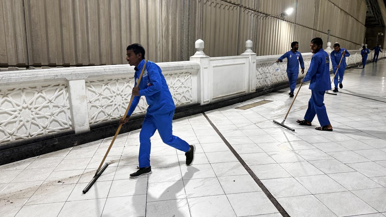 Suudi Arabistan’ın Mekke kentindeki Mescid-i Haram'da bulunan temizlik görevlileri hacı adaylarının bu kutsal vazifeyi daha sağlıklı bir ortamda yapabilmeleri için 24 saat esasına göre vardiyalar halinde temizlik yapıyor.