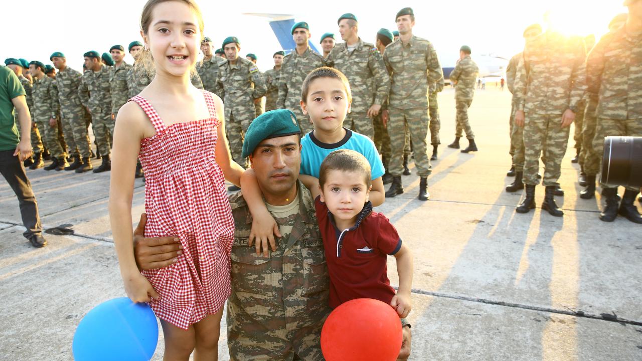 Dün Afganistan`dan ayrılarak hava yoluyla Türkiye`ye geçen 120 Azerbaycan askeri, bugün uçakla ülkelerine geldi.