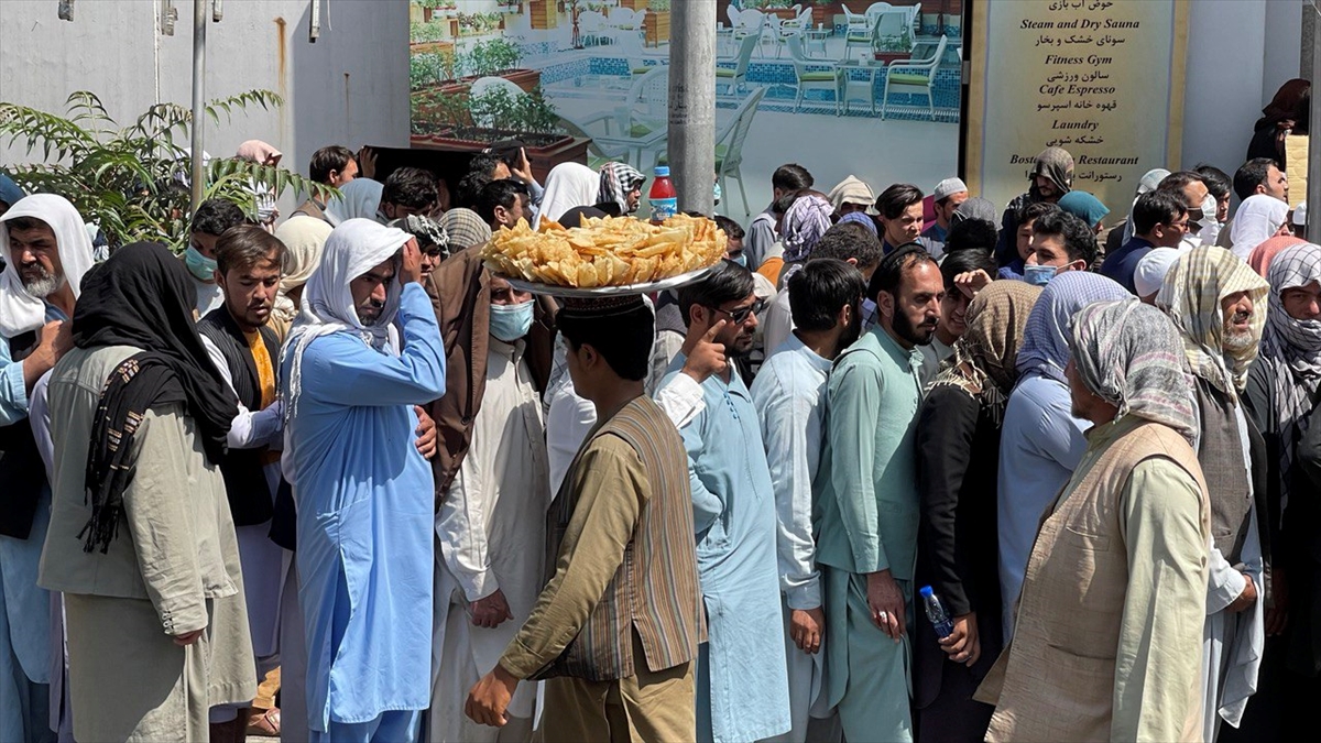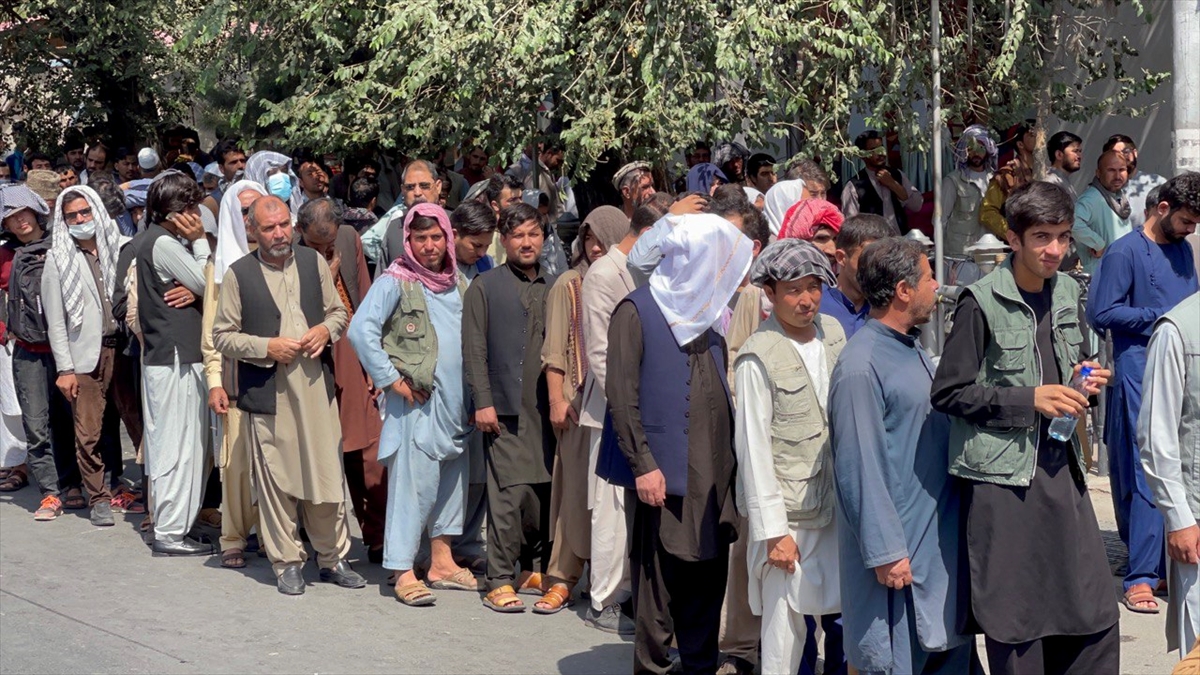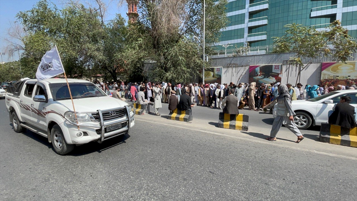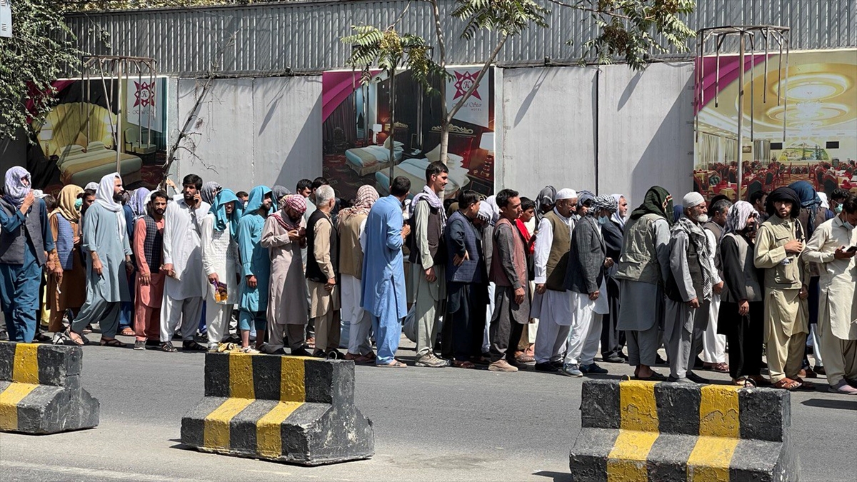 Taliban'ın kontrolü ele geçirdiği Afganistan'ın başkenti Kabil'de, kent merkezindeki bankaların önünde uzun kuyruklar oluştuğu gözlendi.