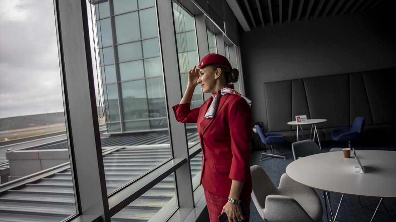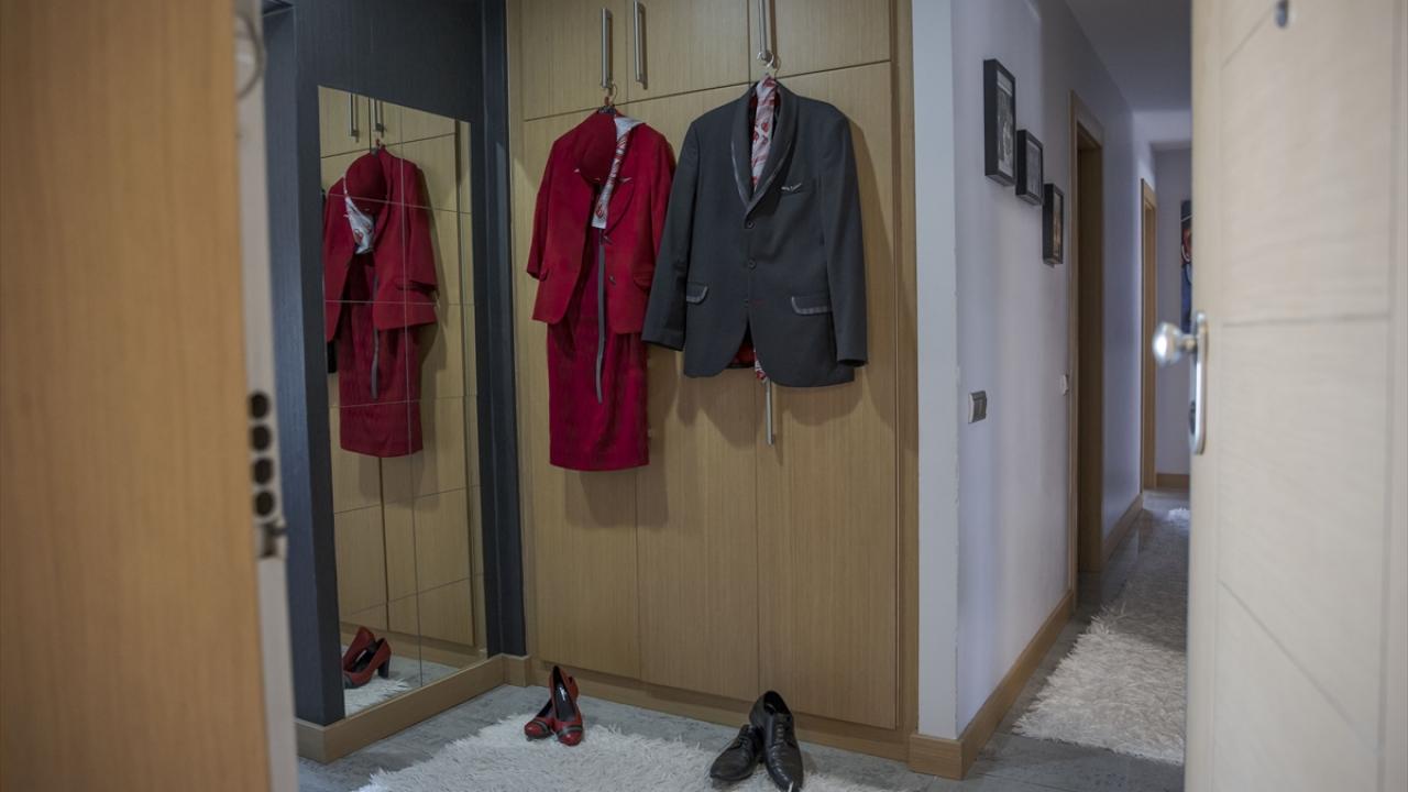 AA muhabiri, yaklaşık 23 yıl görev yaptıkları THY`de 20 yıl önce tanışarak evlenen kabin memuru Işıksaçan çiftinin görev noktalarına yolculuklarını ve uçuş öncesi hazırlıklarını içeren bir günlerini görüntüledi.