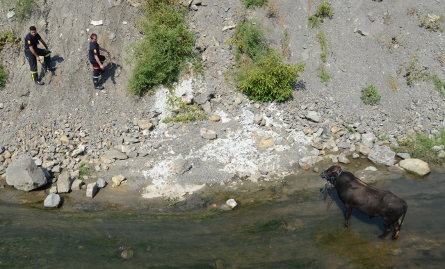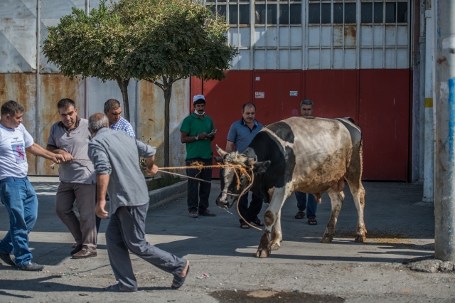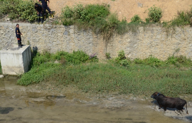 Kesime götürülürken kaçan ve vatandaşlara zor anlar yaşatan kurbanlık boğalar, ekiplerin çabalarıyla yakalandı.