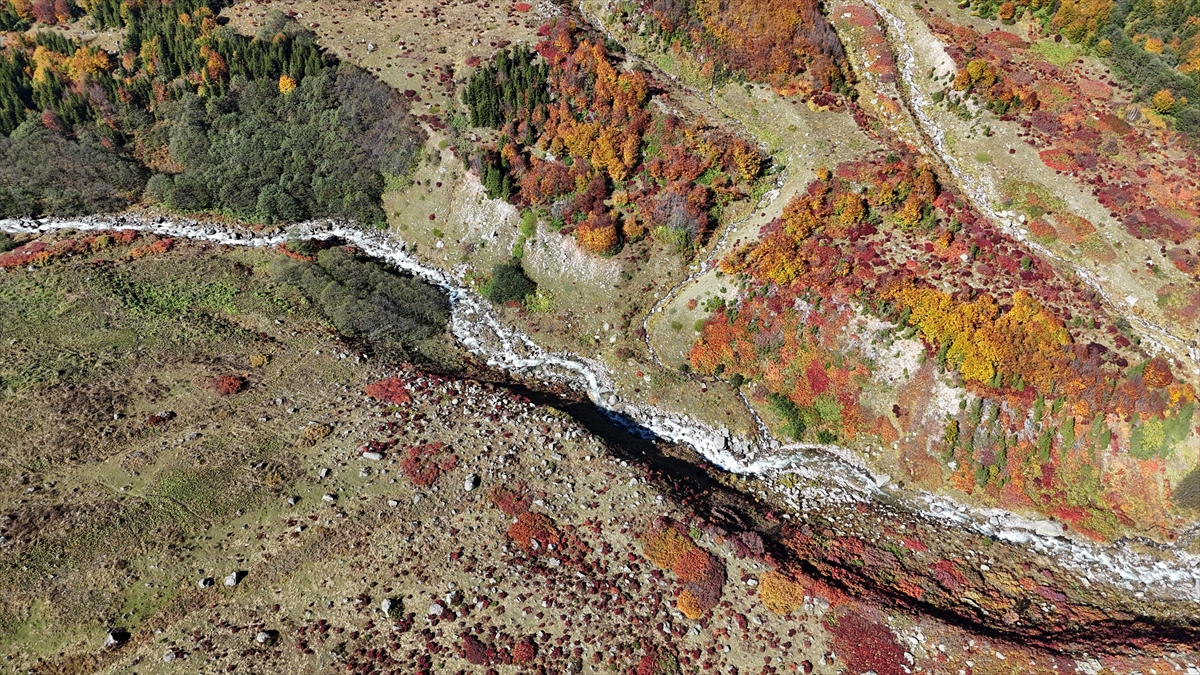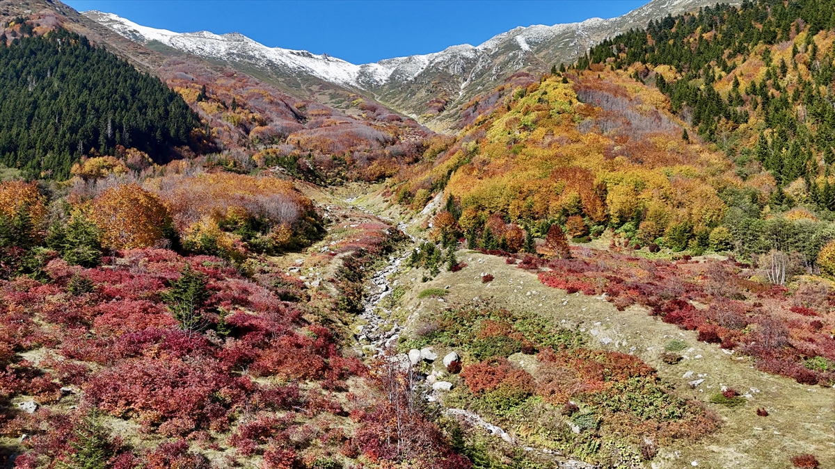 Sonbaharda Kaçkar dağlarında kar eteklerinde ağaçların sararıp dökülen yaprakları ile orman altı zemini ve vadi tabanları da farklı güzelliklere bürünüyor.