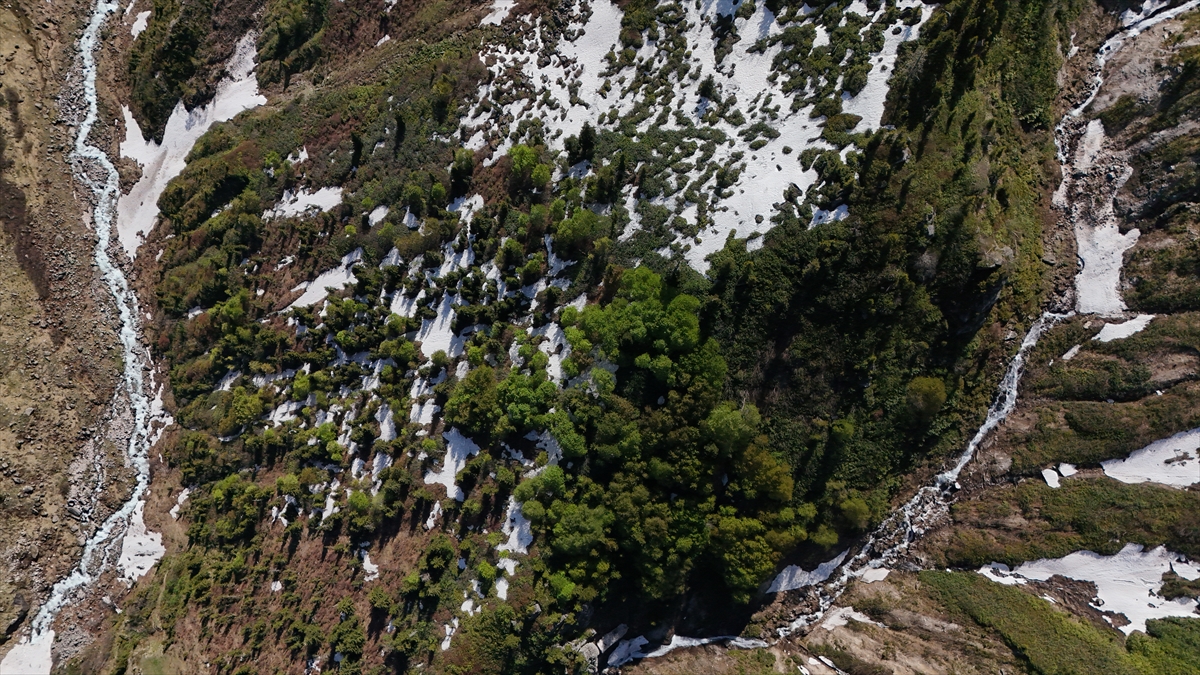 Rize'nin Çamlıhemşin ilçesindeki doğal güzellikleriyle ünlü Kaçkar Dağları'nda, karların erimesiyle tabiat canlanmaya başladı.