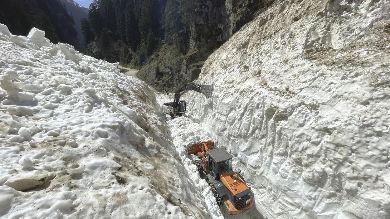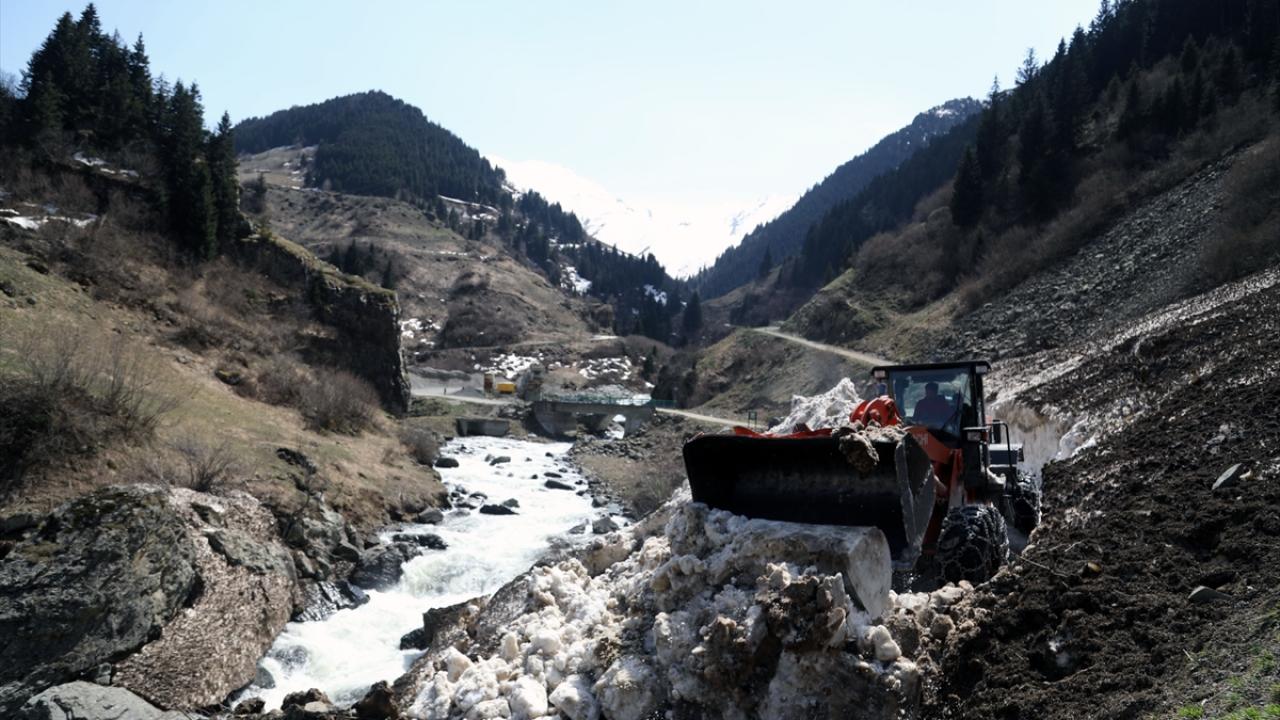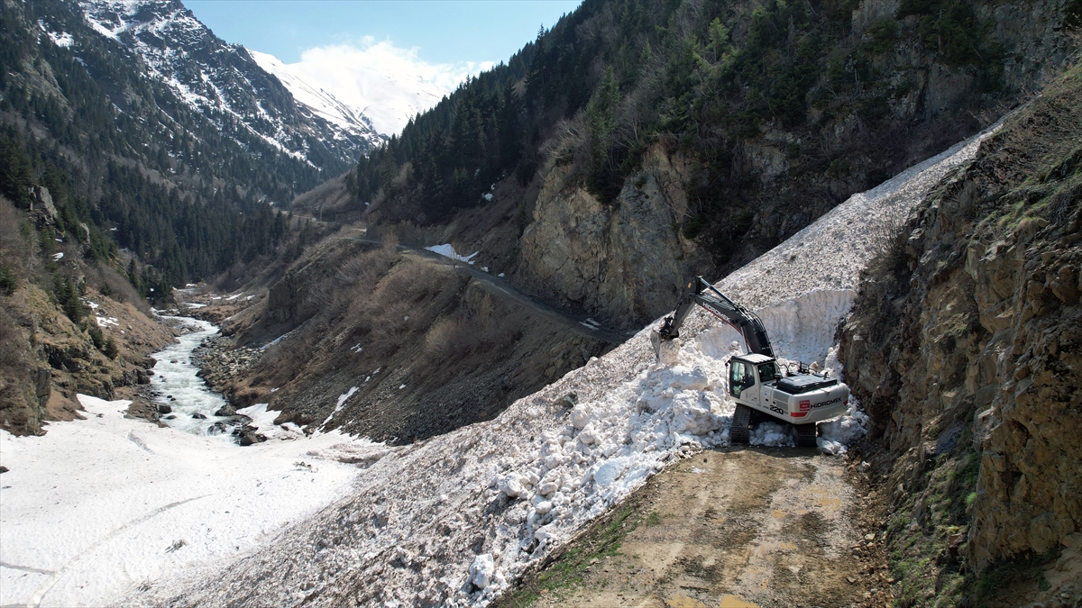 Rize'nin Çamlıhemşin ilçesinde Kaçkar Dağları Milli Parkı sınırları içindeki yaylaların çığ nedeniyle kapanan yollarının Ramazan Bayramı'na kadar ulaşıma açılması için hummalı çalışma yürütülüyor.