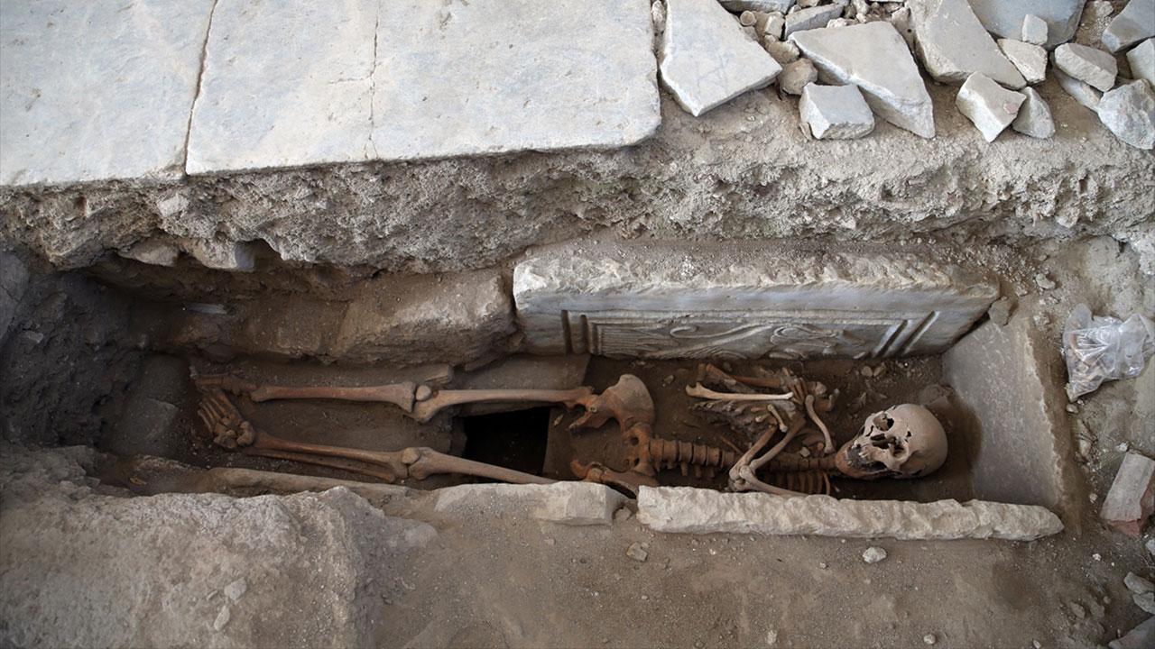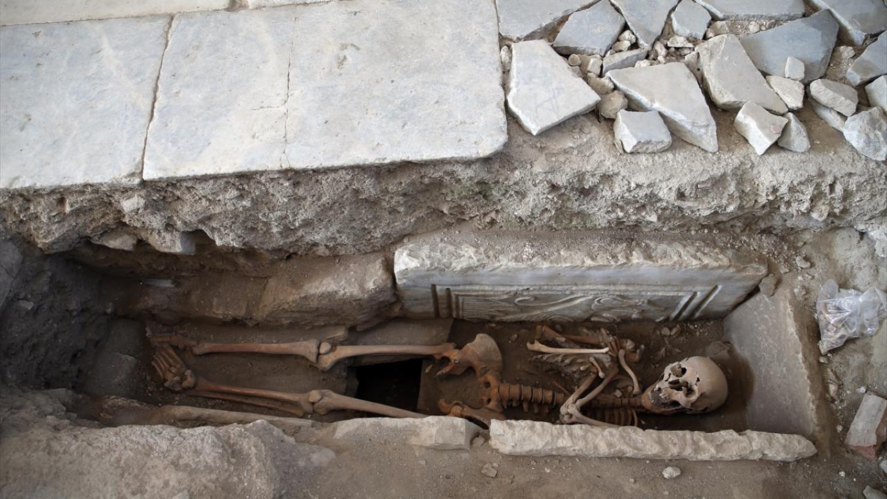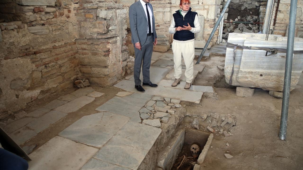 Aydın'da Kadıkalesi Antik Kenti'ndeki kazılarda kilise içinde bir kadına ait olduğu belirlenen mezara ulaşıldı.