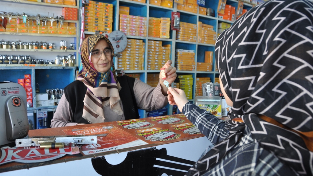 Müşterilerden Mine Çelik de anahtarını kopyalatmak için Budak`ın dükkanına geldiğini belirterek, "Bu iş yerinden çok memnunum. Çoğunlukla erkeklerin yaptığı anahtarlık işini, teyzemiz yapıyor." dedi.