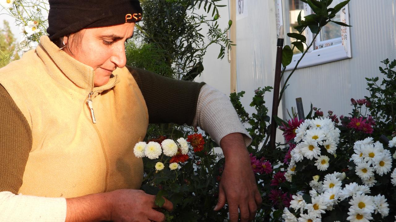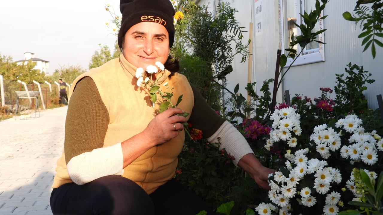 Depremzede kadınlar tarafından dikilen çiçekler ve ekilen sebzelerle konteyner kentin sokakları yeşile büründü.