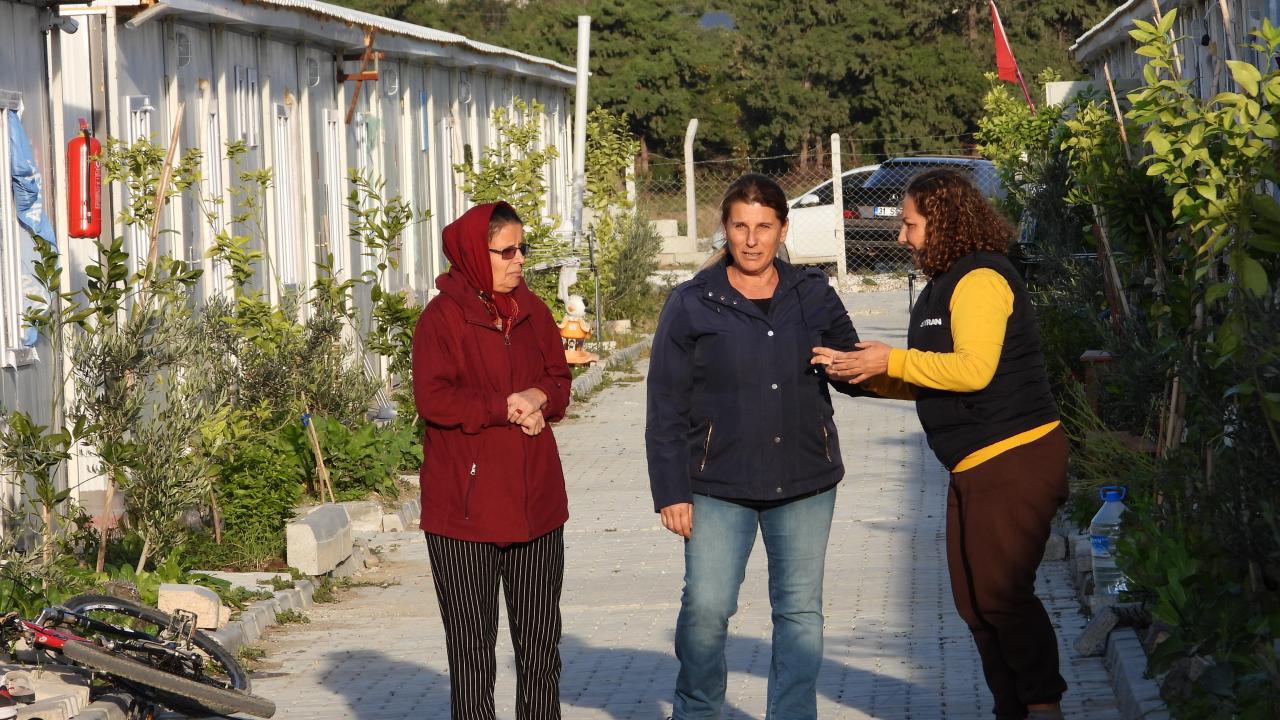 Depremin vurduğu Hatay’da vatandaşların yaşamlarını sürdürdükleri konteyner kentin sokakları kadınlar tarafından dikilen fidanlar, çiçekler ve ekilen sebzelerle yeşile büründü.