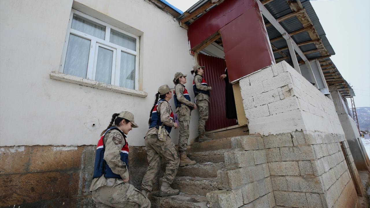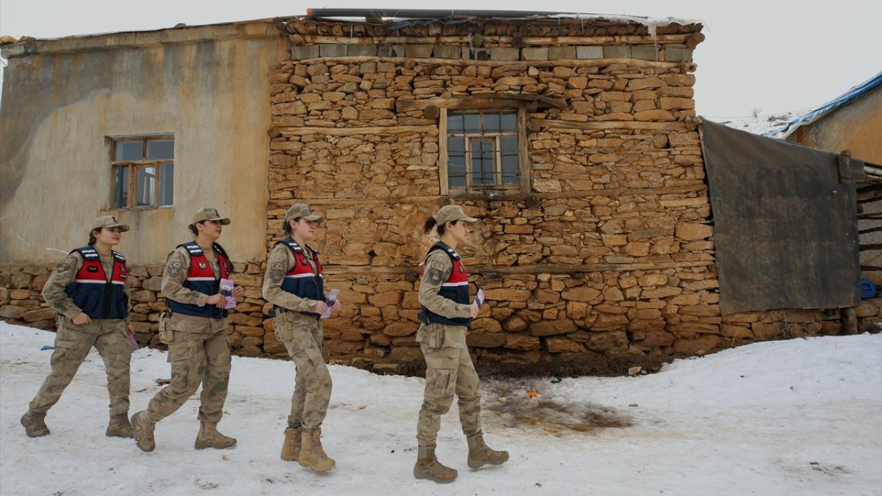 Olumsuz hava koşullarına rağmen en ücra köylere giden kadın komutanlar, şiddete maruz kalma ihtimali bulunanların rahatlıkla güvenlik güçlerine ulaşabilmesi için geliştirilen KADES programını tanıtıyor.