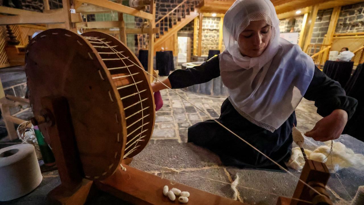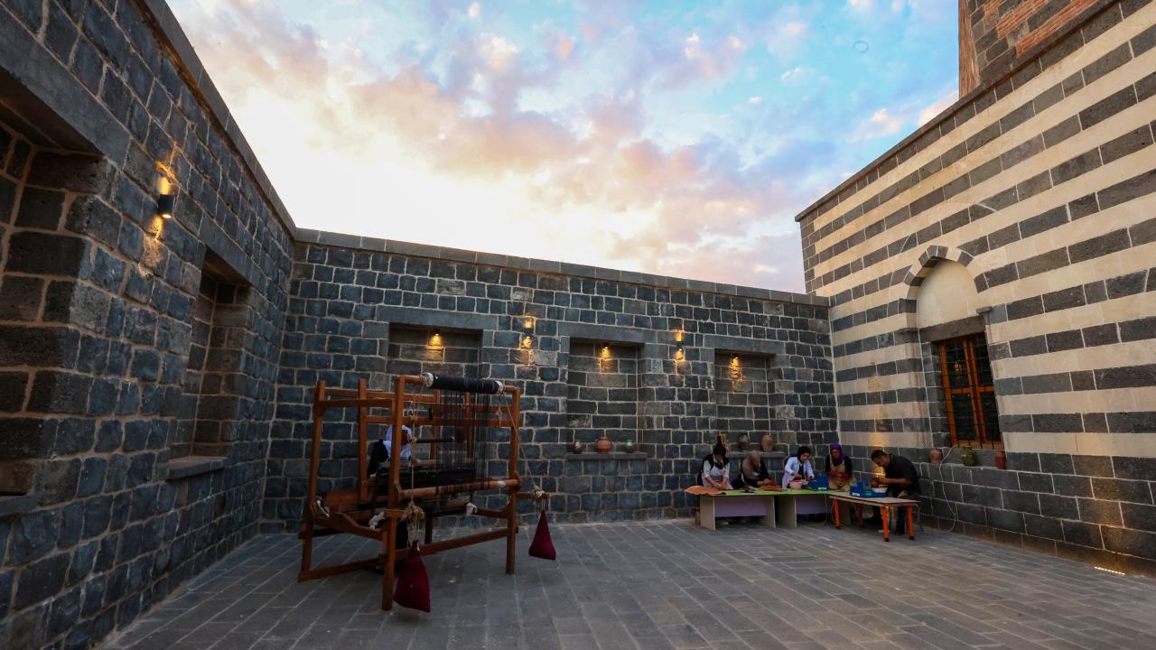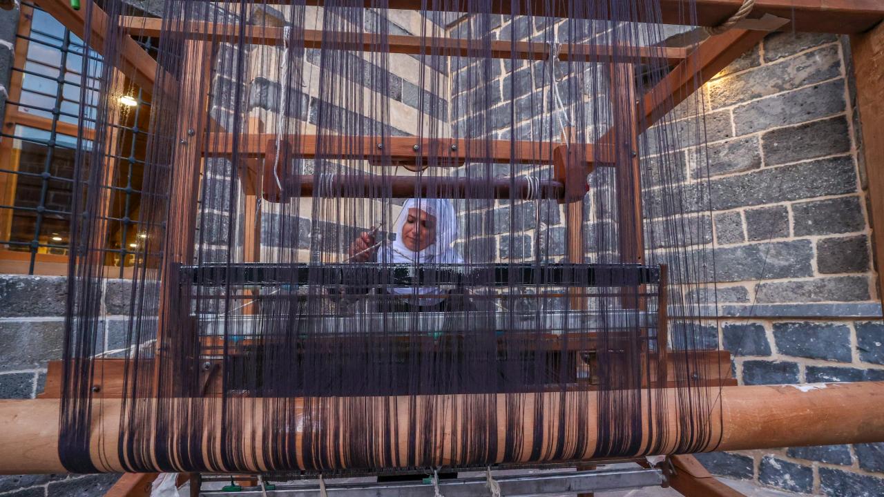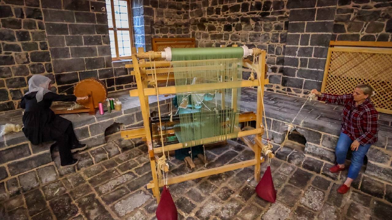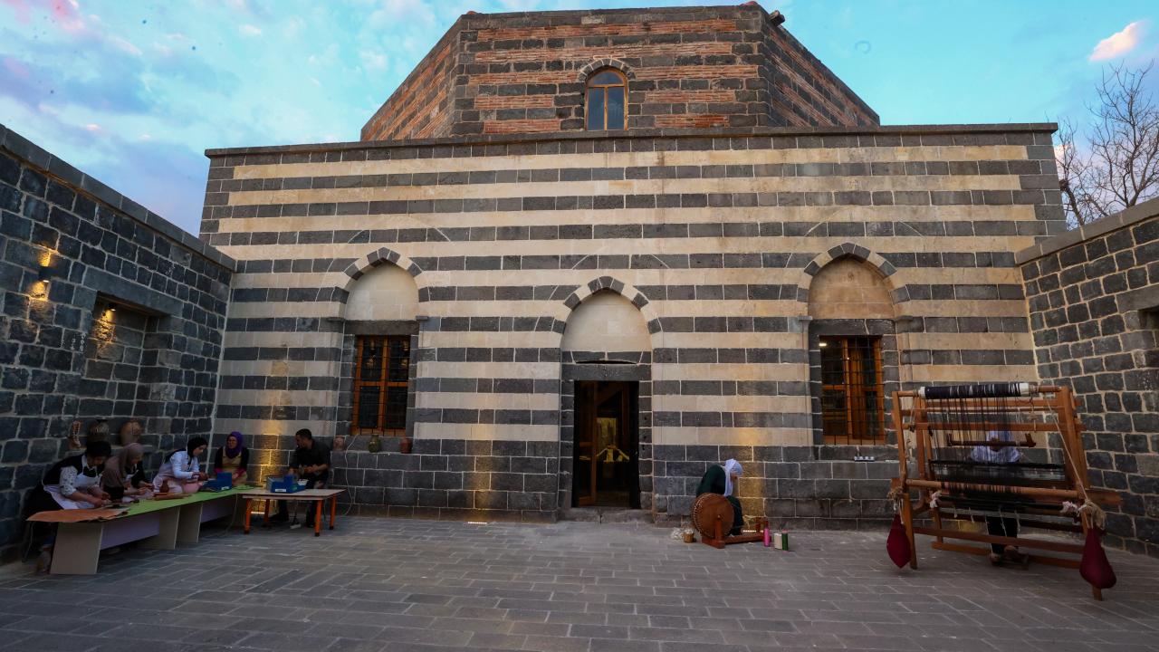 Diyarbakır'da kadın kursiyerler, ipek dokuma tezgahlarını 457 yıllık hamama kurdu.