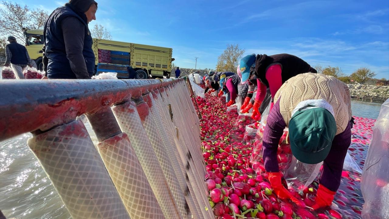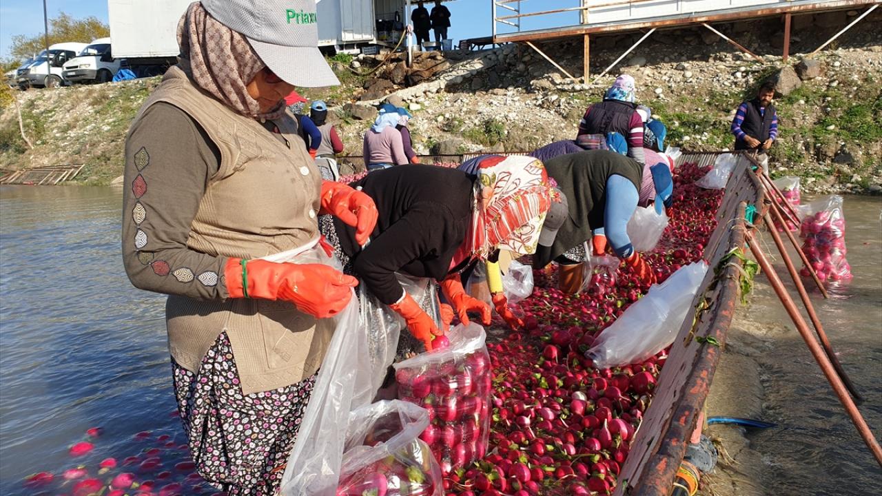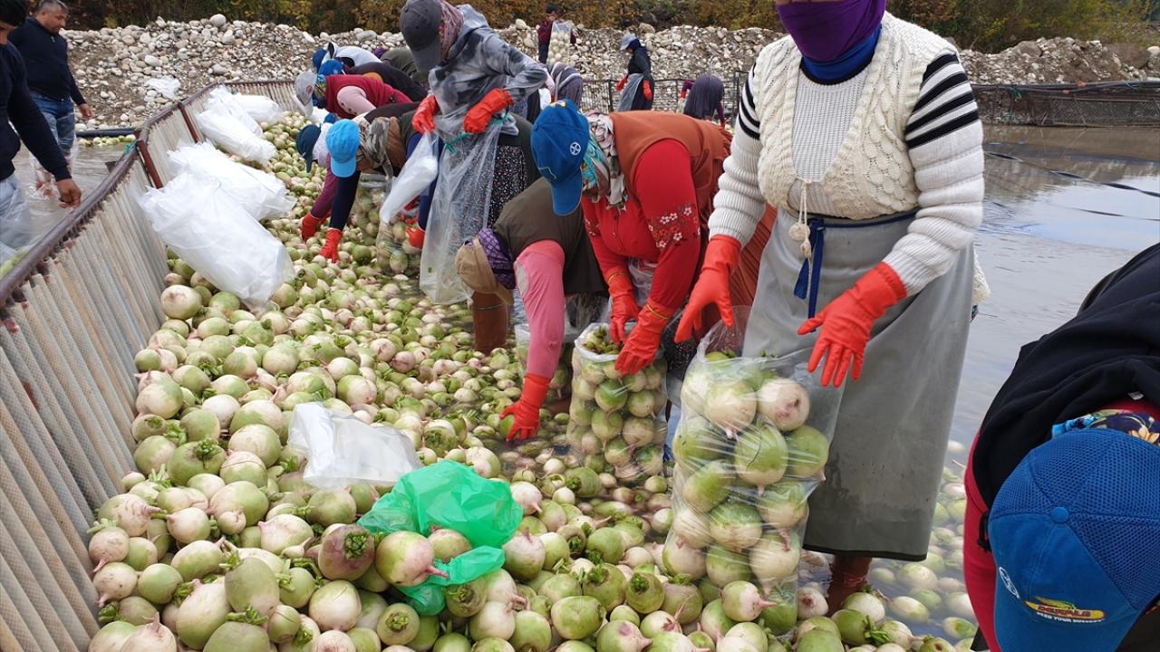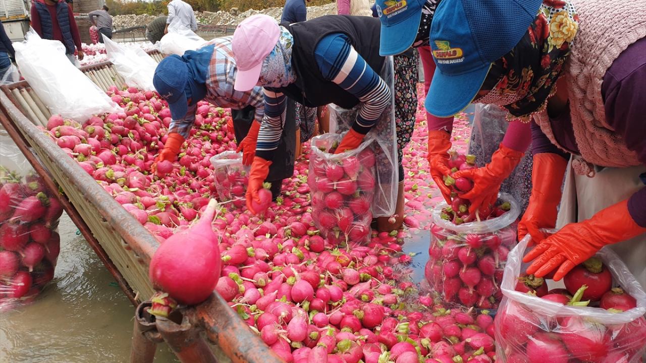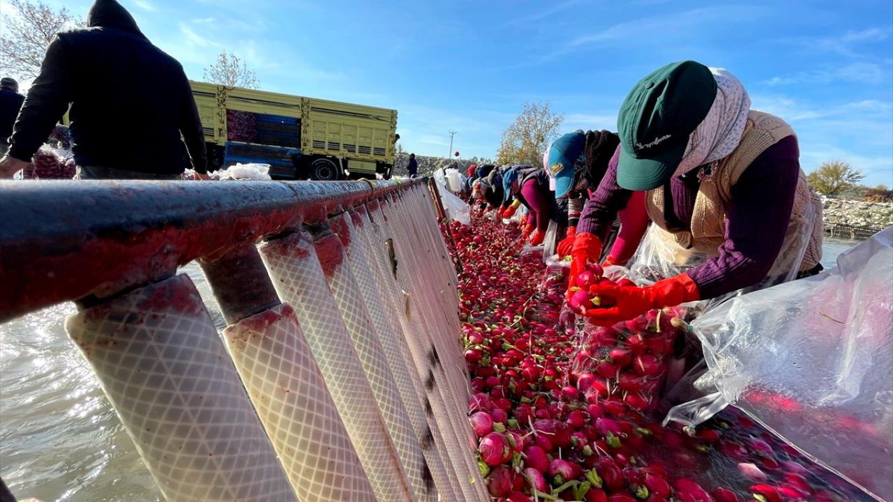 Türkiye'nin turp üretiminin yüzde 80'inden fazlasının yapıldığı Osmaniye'nin Kadirli ilçesinde, coğrafi işaret tescilli turp, kadınların soğuk suda verdikleri mesainin ardından sofralara geliyor.