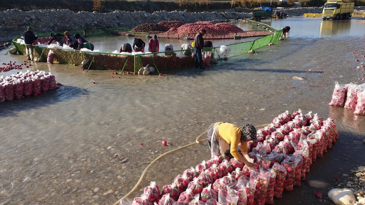 İşçi Halime Çuhadar da, "4 ay boyunca bu şekilde çalışıyoruz. Tatilimiz falan yok. Hava soğuk, bir de suyun soğuğu eklenince bazen dayanamıyoruz ama ekmek parası katlanıyoruz. Yaz gelince de yer fıstığı gibi diğer ürünlerin çapasında, toplanmasında çalışıyoruz." diye konuştu.