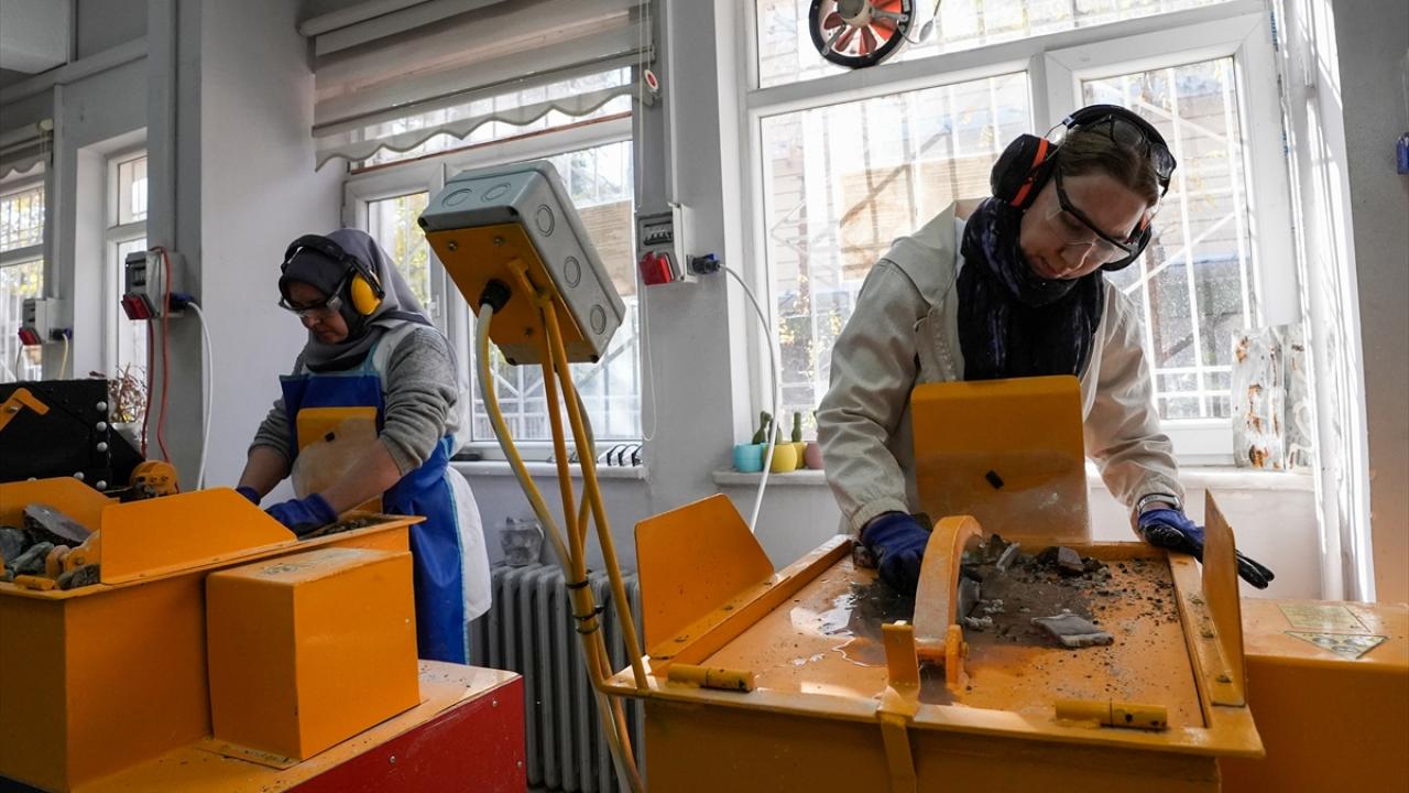 Enstitüde kuyumculuk teknolojisi öğretmeni Sevcan Aydoğan, atölyeyle doğada bulunan ancak bugüne kadar çok da farkında olmadıkları yarı değerli taşlarla tanıştıklarını söyledi.