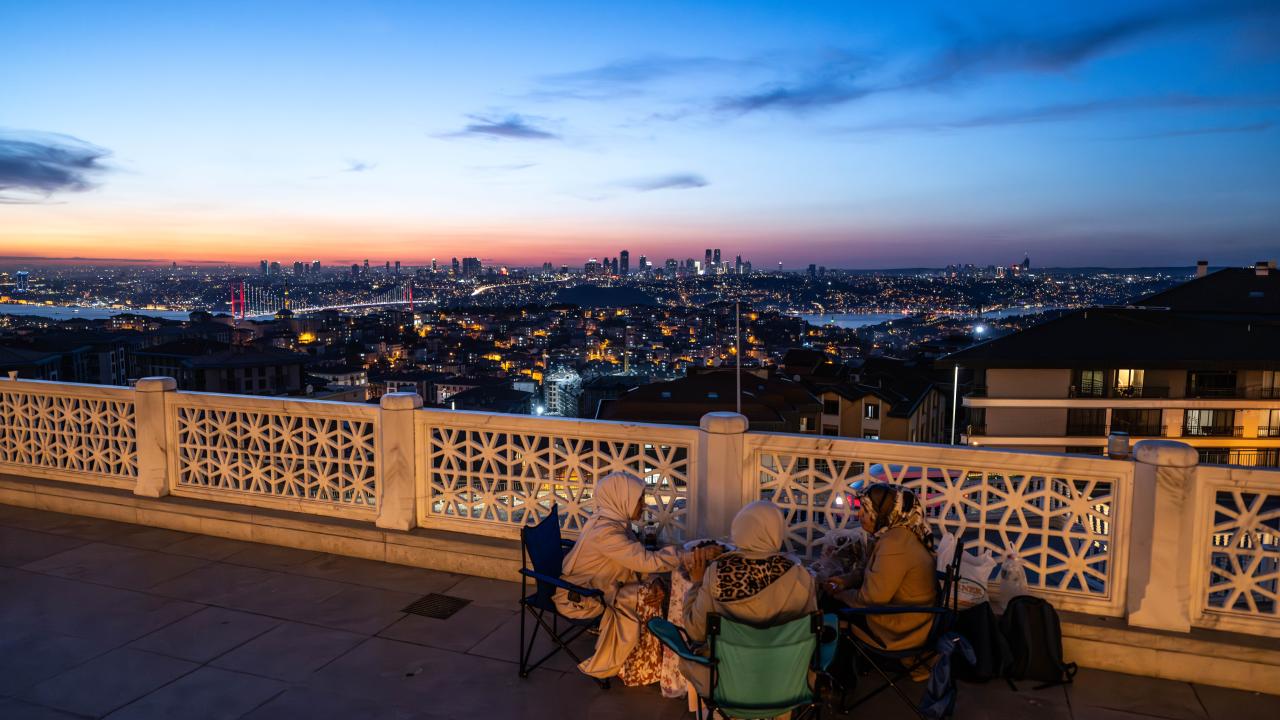 Vatandaşların birçoğu, oruçlarını da Sultanahmet Meydanı`ndaki çimlerin üzerinde açtı. Çevredeki lokantalarda da iftar için uzun kuyruklar oluştu.