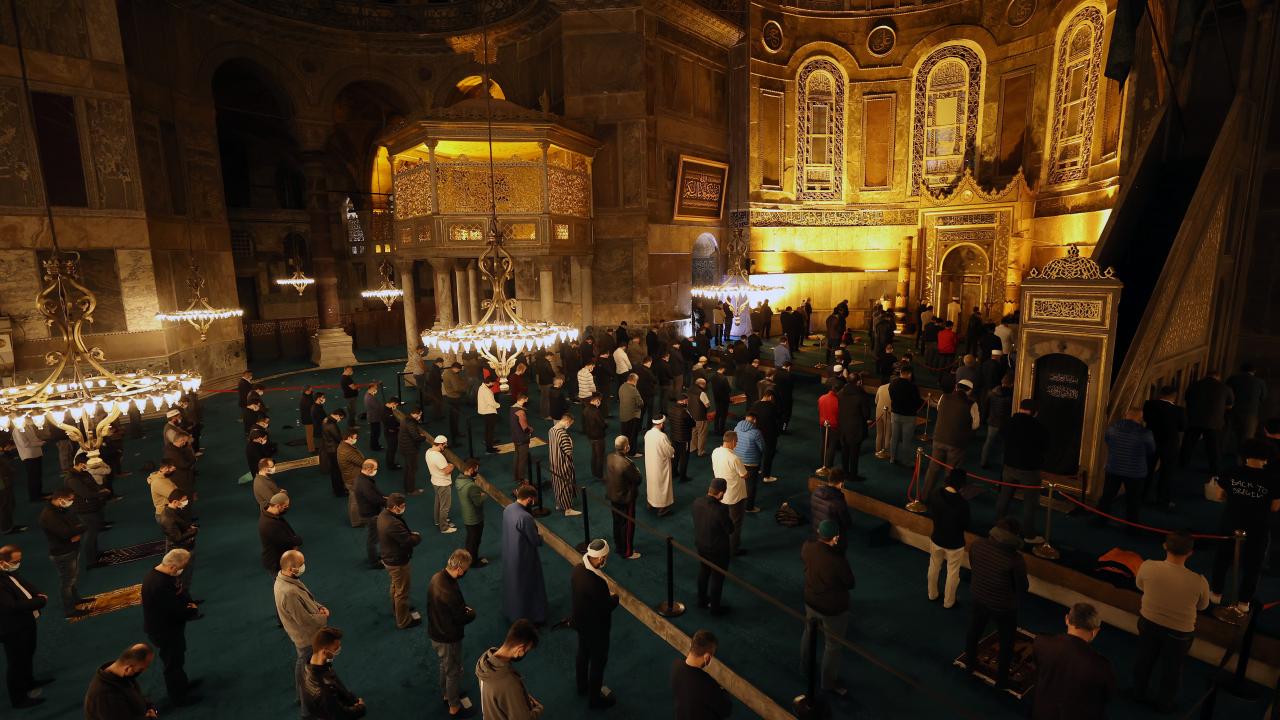 87 yıl aradan sonra ibadete açılan Ayasofya-i Kebir Camii Şerifi`nin minareleri, "La İlahe İllallah" yazılı mahyayla süslenirken, Sultan Ahmet Camii`nde "Vakit Paylaşma Vakti" yazılı mahya asıldı. Büyük Çamlıca Camii`nin mahyasına ise Türk bayrağı yansıtıldı.