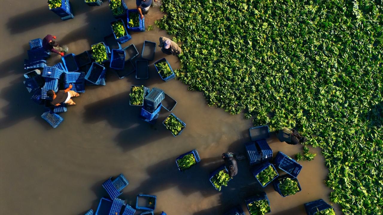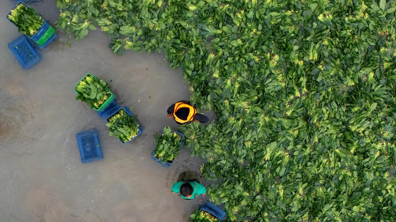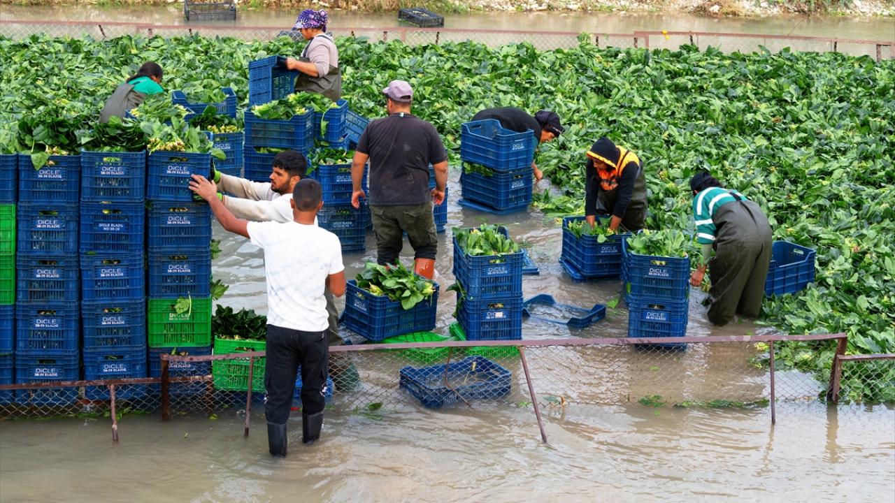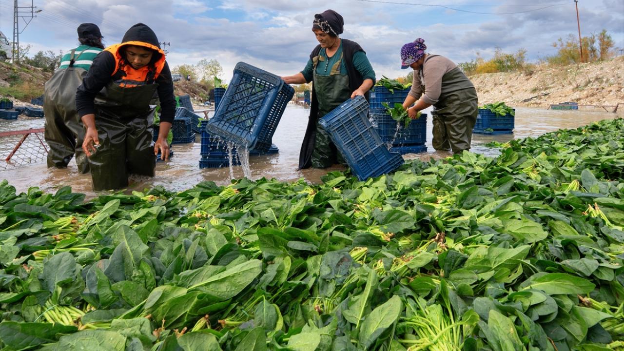 Osmaniye’nin Kadirli ilçesinde hasadı tamamlanan ıspanakların yıkama ve temizleme aşamaları görüntülendi