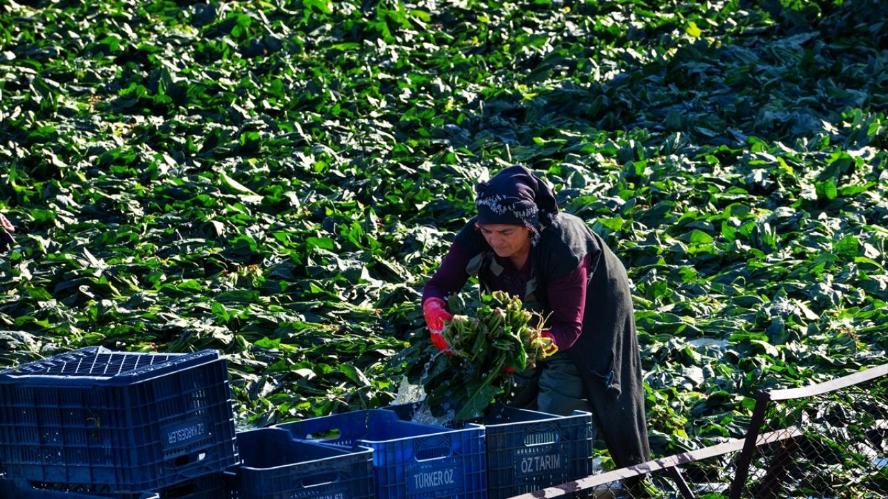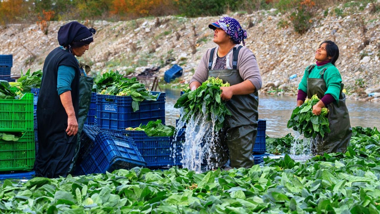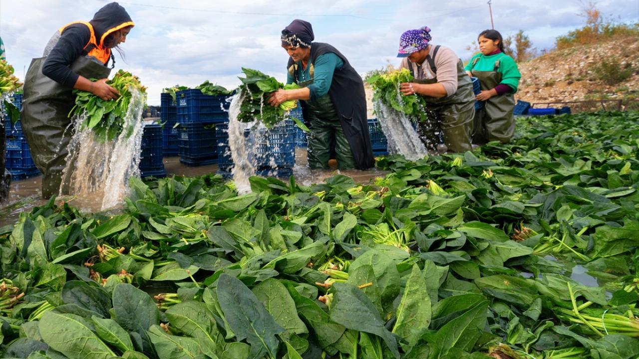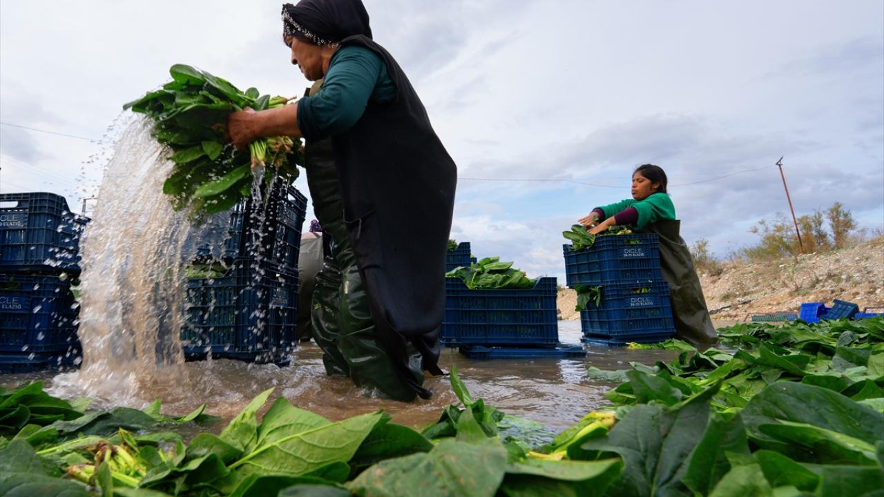 Tarlalardan toplanarak işleme alanlarına getirilen ıspanaklar, işçiler tarafından ayıklanıp yıkanarak satışa hazır hale getiriliyor.