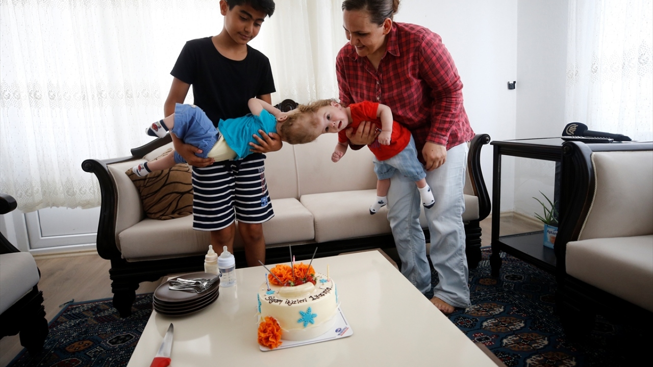 Antalya'da emeklemeye ve yürümeye çalışırken birbirlerinin canını acıtan kafadan yapışık siyam ikizleri Derman ve Yiğit, bir yaşına girdi.