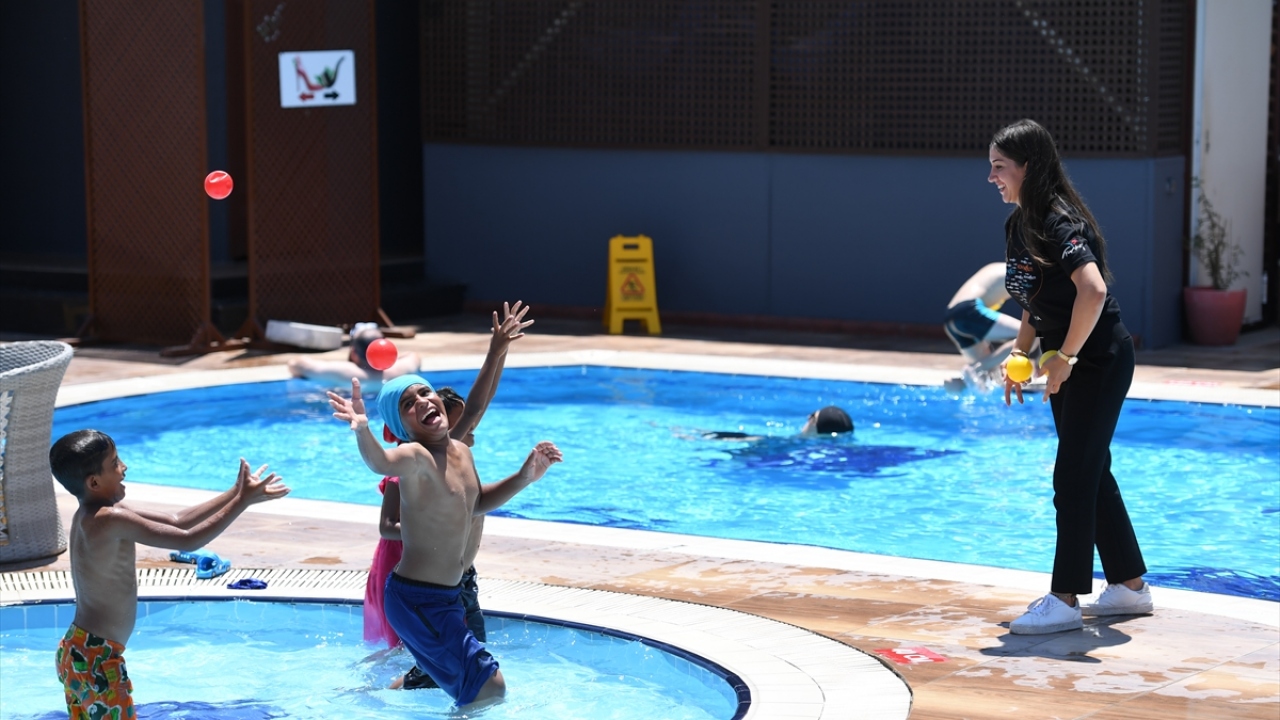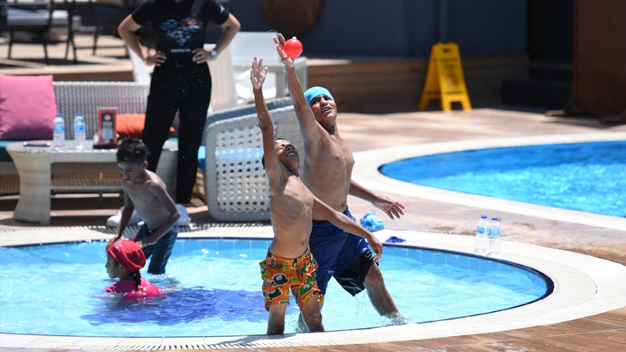 Havuzda doyasıya eğlenen çocuklar, ardından Antalya Akvaryumu`nu gezmenin mutluluğunu tattı.