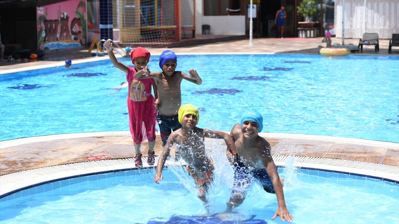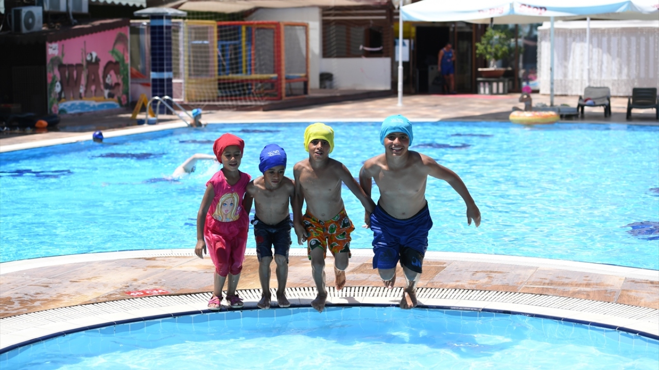 Antalya'da çöp konteynerinin üzerinde havuz girenleri izlerken çekilen fotoğrafı sosyal medyada paylaşılan çocuk ile kardeşleri, havuzda yüzmenin sevincini yaşadı.