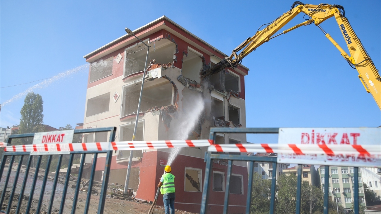 Çevrede önlem alan yıkım ekiplerinin gözetiminde başlatılan yıkım çalışması 3 saatte tamamlandı.