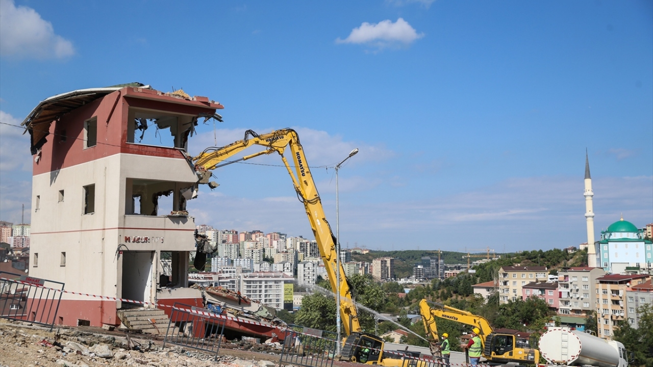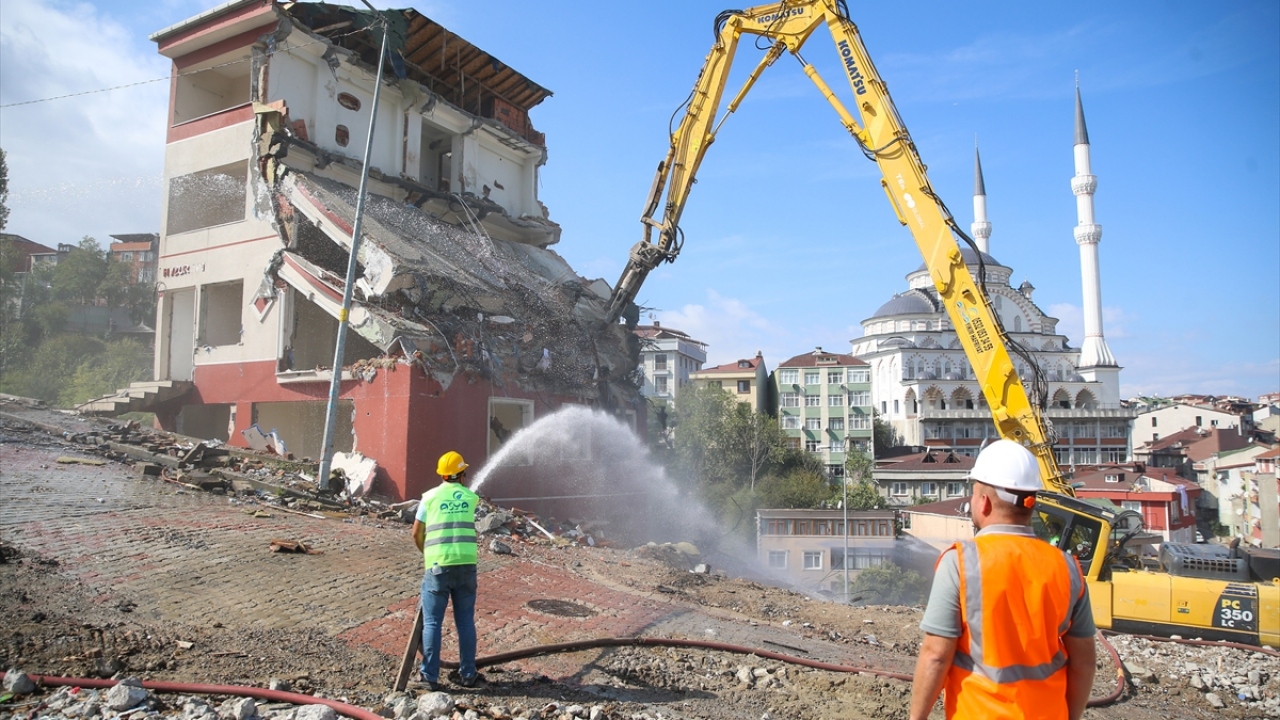 Kağıthane'deki riskli binanın yıkımı havadan görüntülendi