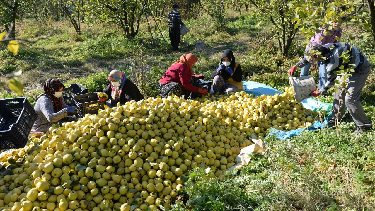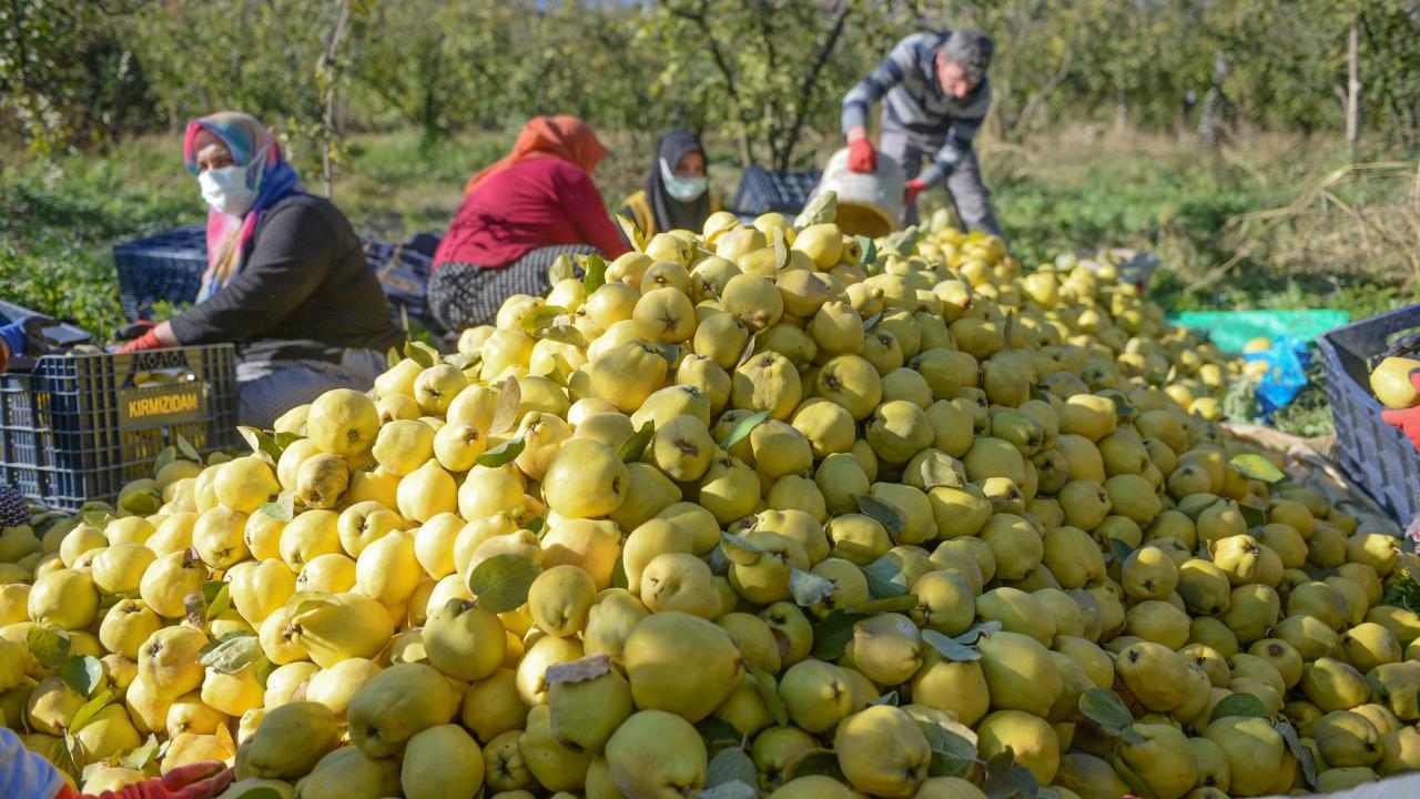 Ayvalar, bahçelerde kalitesine göre ayrıştırılarak iç piyasaya ve yurt dışına gönderilmek üzere hazırlanıyor.