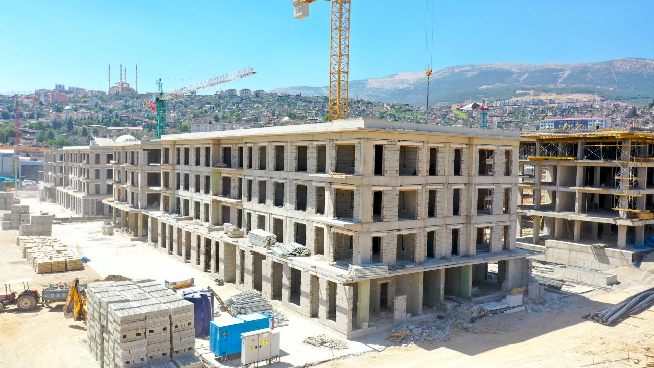 "Asrın felaketi" olarak nitelendirilen 6 Şubat 2023 tarihindeki depremlerde büyük oranda hasar gören Kahramanmaraş'ın kent merkezindeki 1 etap olarak nitelendirilen bölgedeki inşaatlar hızla yükseliyor.