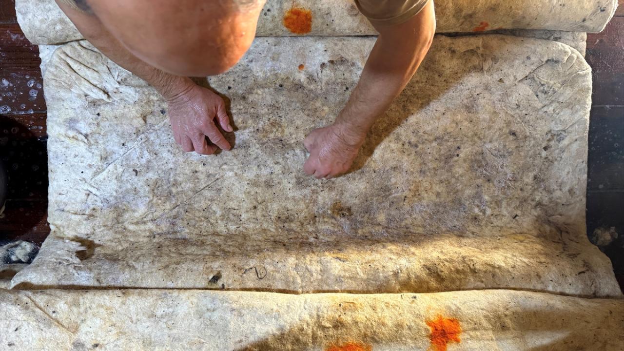 Koyun ve kuzu yününden yapılan, soğuğa karşı güçlü koruma özelliğiyle yüzlerce yıldır Türk kültüründe yer alan keçe, Kahramanmaraş'taki son ustasının elinde tüketiciler için hazırlanıyor.