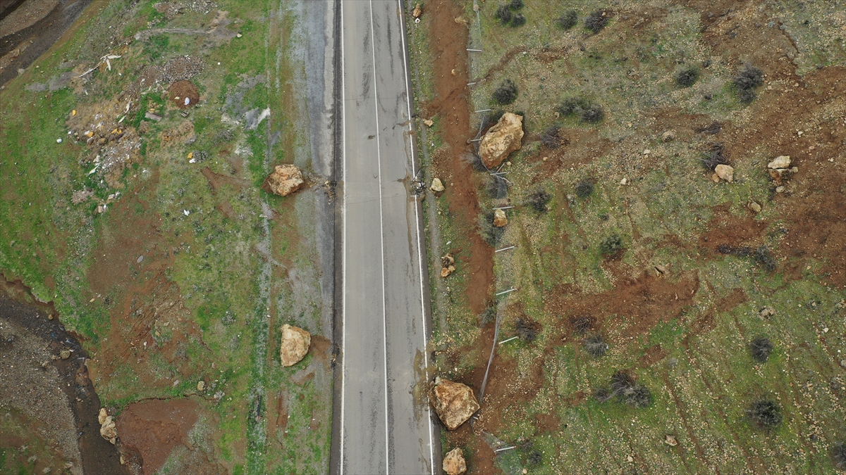 Kahramanmaraş merkezli 6 Şubat'taki depremler sonrası topraktaki yüzey kaymaları ve dağdan kopan kayalıklar, kentin kuzey ve güneyini birleştiren bağlantı yolunda ulaşımı olumsuz etkiliyor.